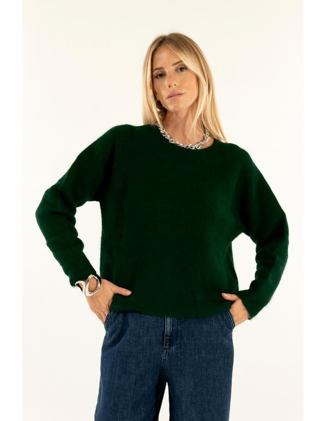Jersey Kontatto com um corte suave e ligeiramente descontraído, envolvente graças à mão macia num fio de mistura de lã peluda. Linha limpa com decote redondo e mangas com construção que suaviza os ombros para uma silhueta natural. Borda discreta em bruto. Perfeito para o escritório e para o dia a dia com ganga ou alfaiataria.