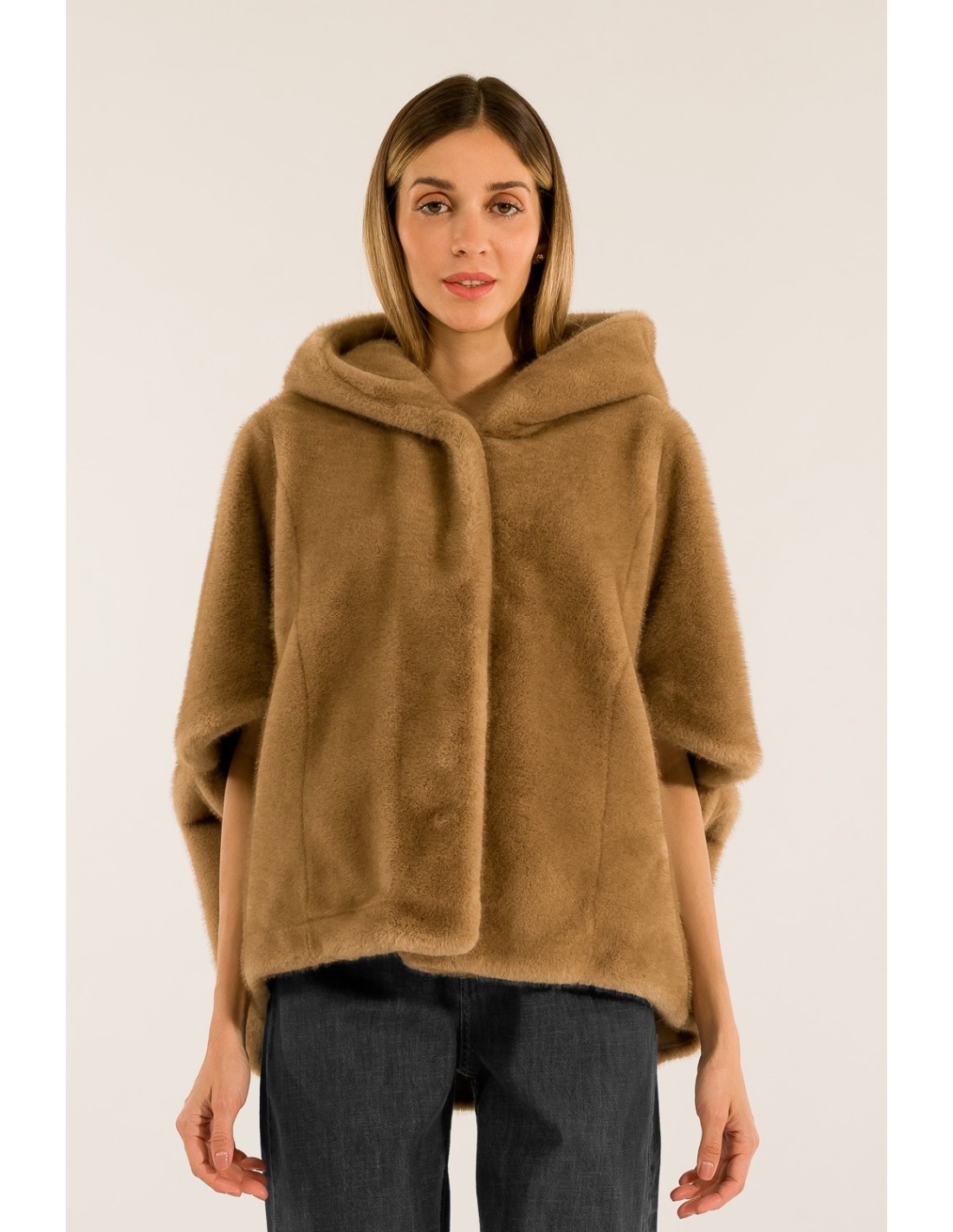 Kontatto assina um casaco envolvente com um corte suave e ligeiramente oversized. Tecido com efeito de pelo, macio e quente, com um capuz largo e fecho oculto para uma linha limpa. Perfeito sobre camisolas e blazers, acompanha com elegância o quotidiano citadino e os aperitivos à noite.