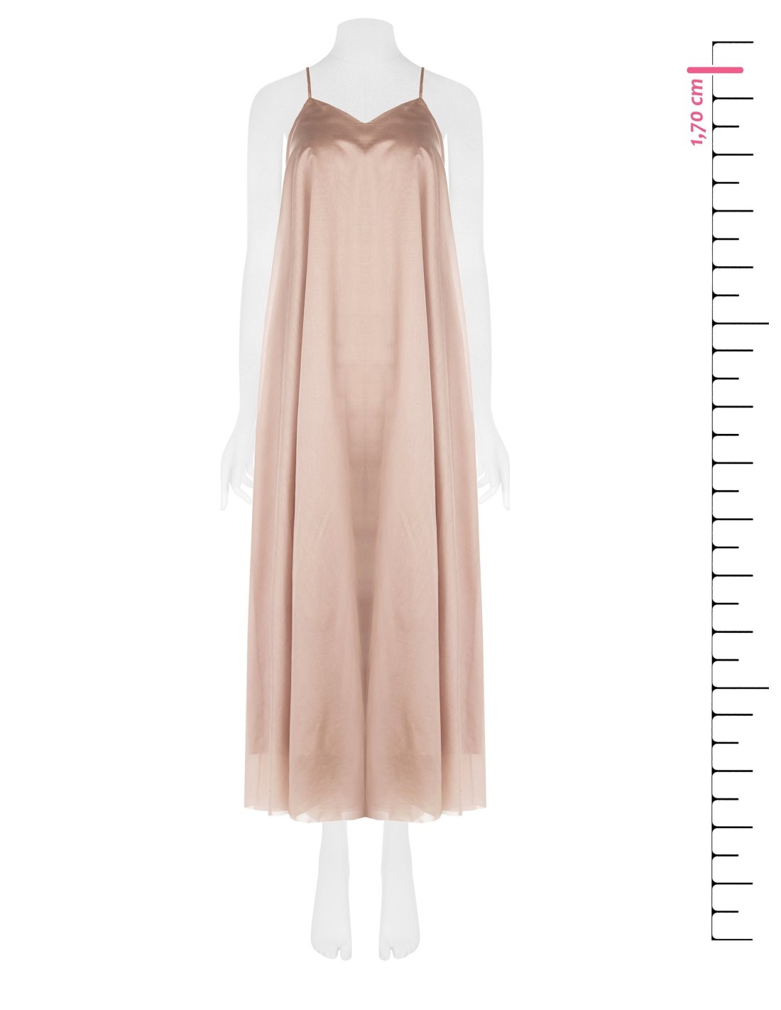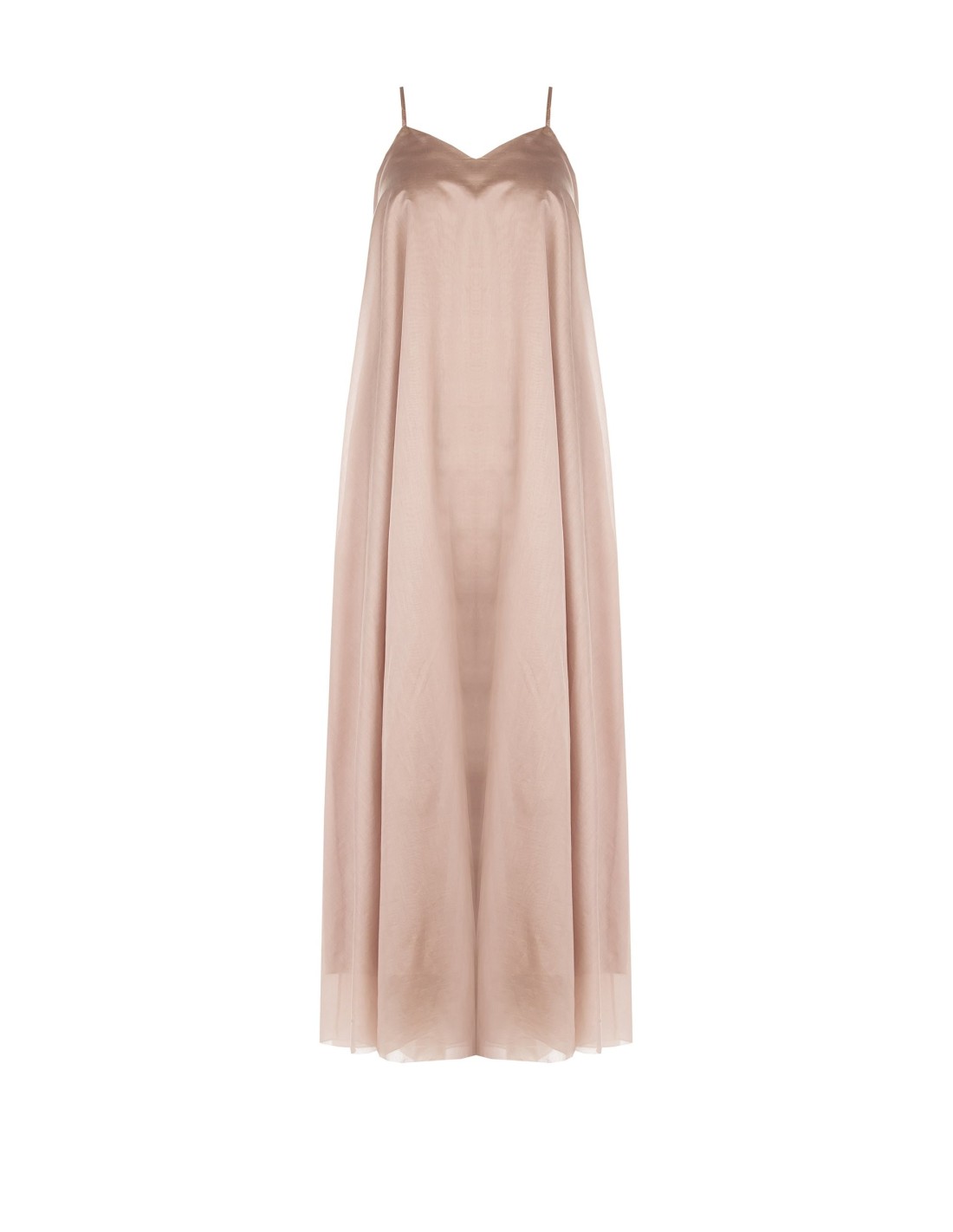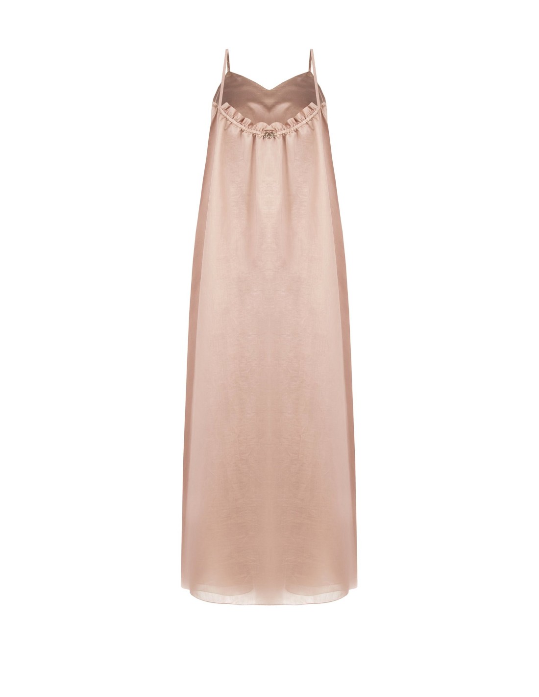 Vestido longo de corte suave e evasé, em lyocell ultraleve com textura fluida e leve na pele. O decote em coração e as alças finas realçam o decote com delicadeza, enquanto o volume acompanha a silhueta com conforto. Perfeito para festas, cerimónias e eventos de verão.