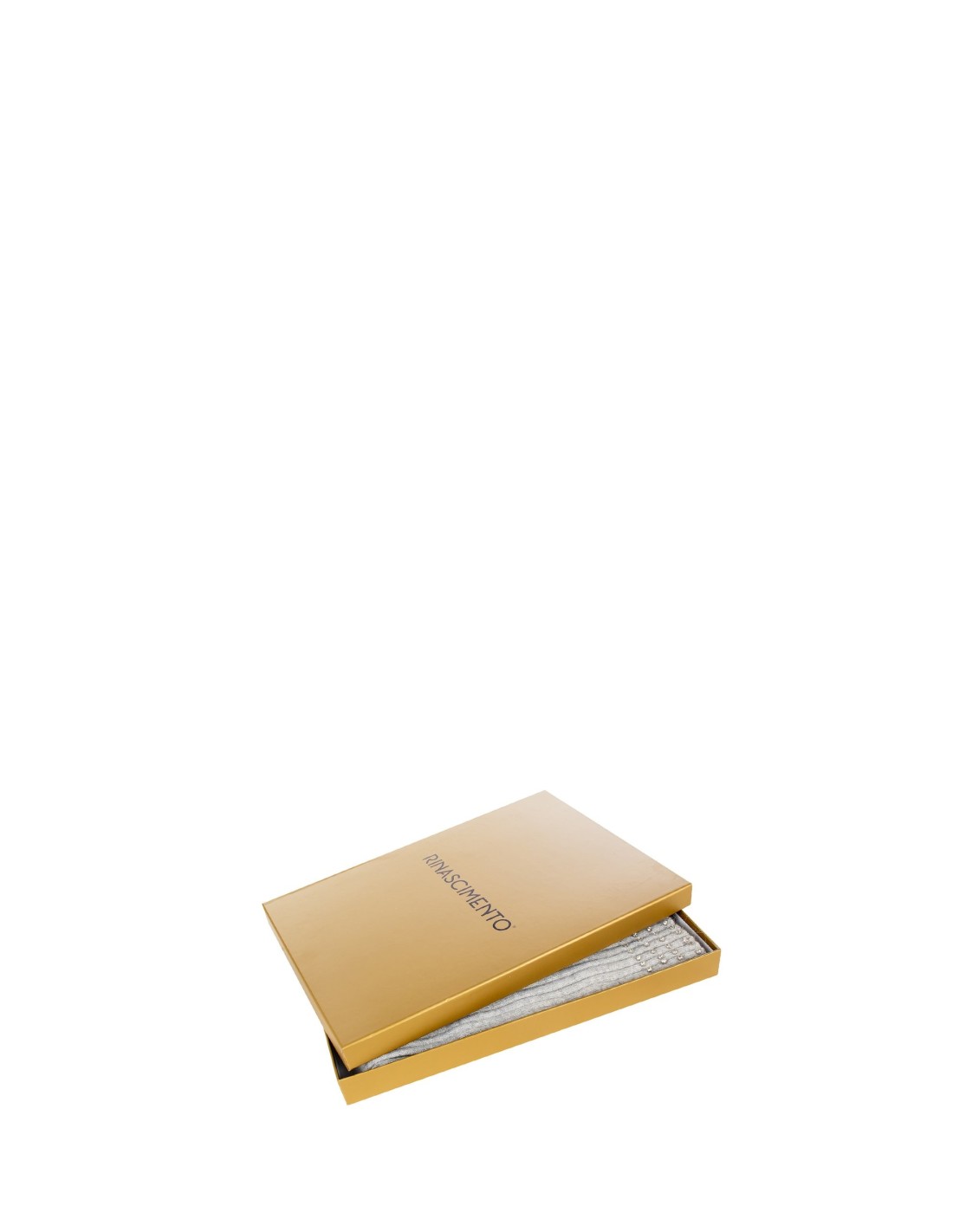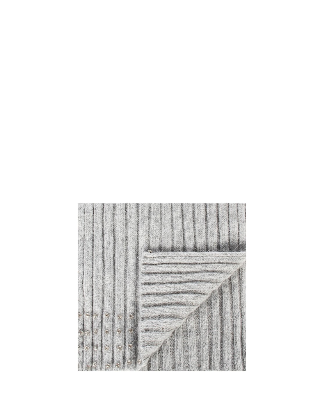 Cachecol Maxi envolvente com um ajuste suave, com nervuras para um efeito casulo. Malha macia com textura em relevo, leve mas quente. A borda é iluminada com micro strass e charme metálico Rinascimento. Perfeito para o dia a dia chique e para embelezar looks de escritório ou noites informais.
