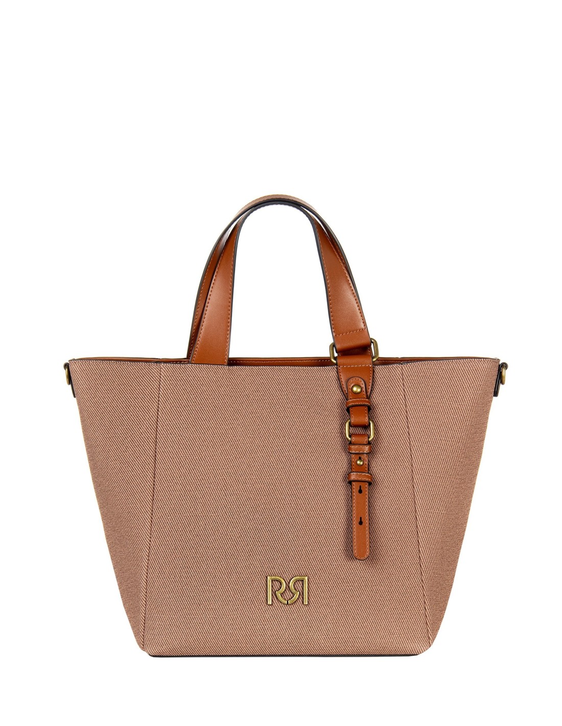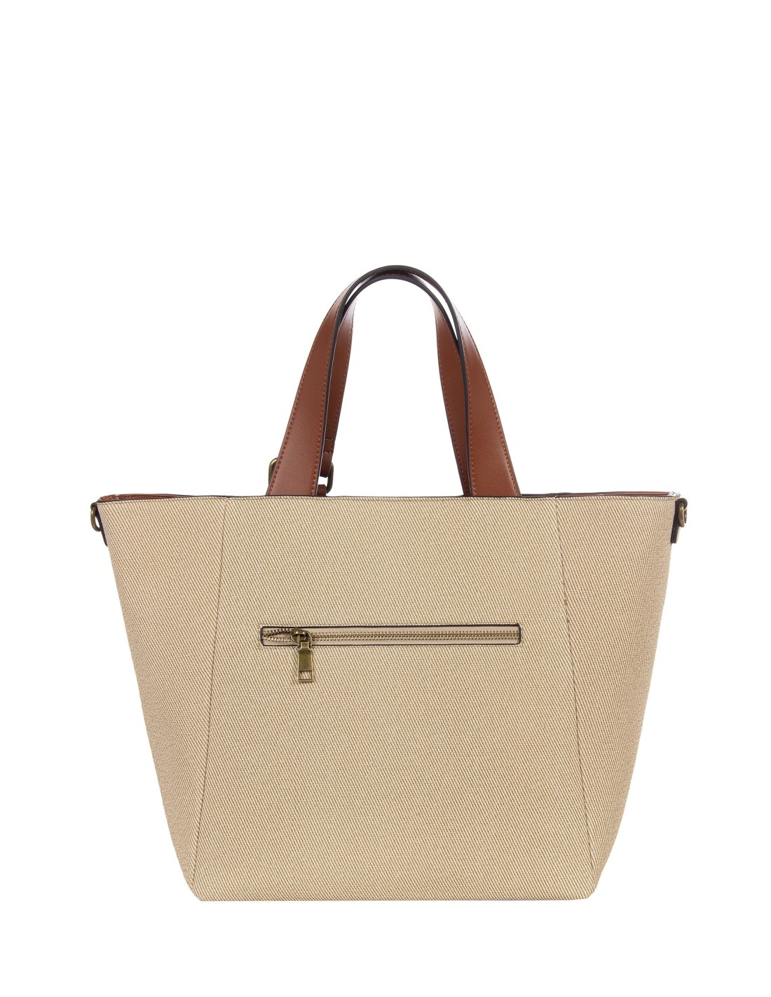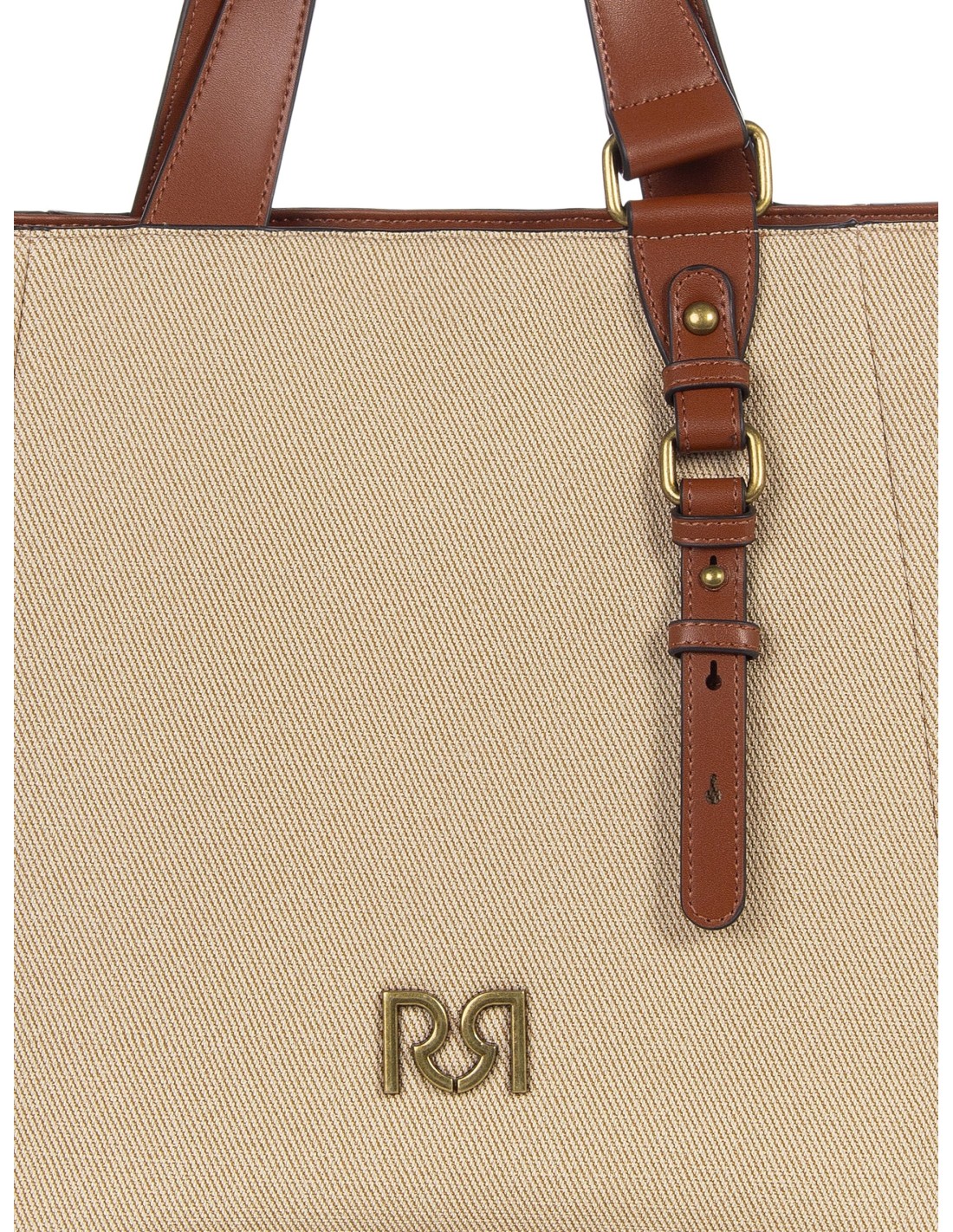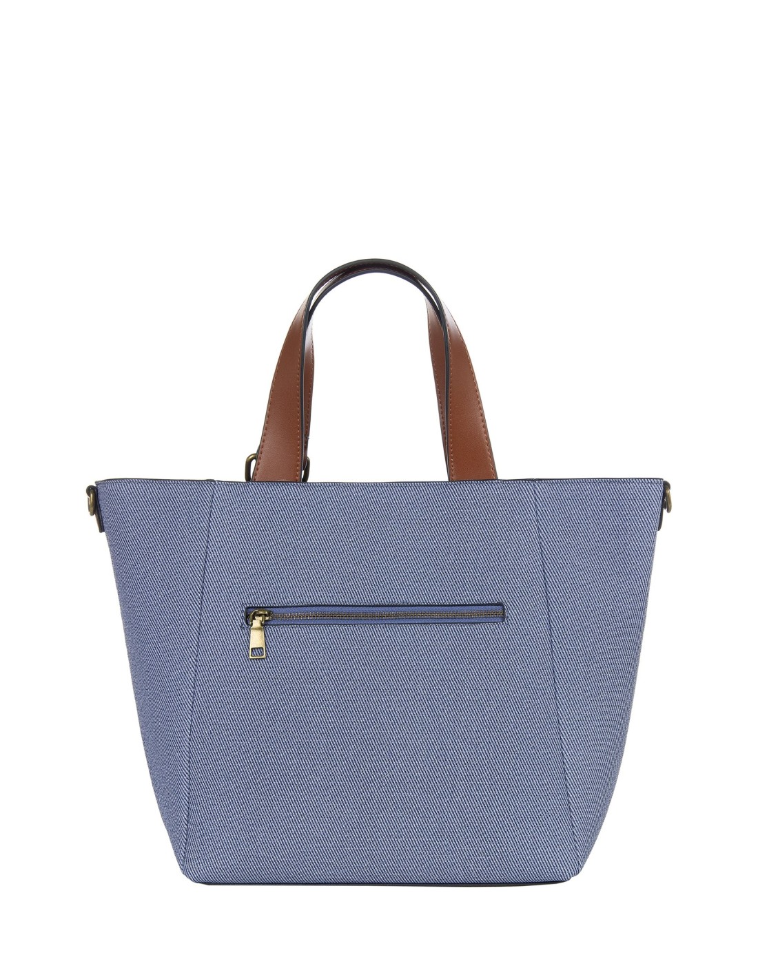 Maxi Shopper em tela com acabamentos em pele sintética e alça de ombro regulável e removível Rinascimento
