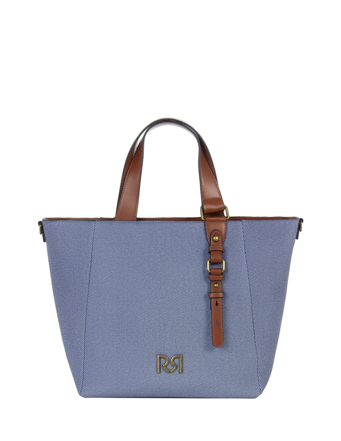 Maxi shopper em tela com acabamentos em pele sintética e alça ajustável e removível Rinascimento