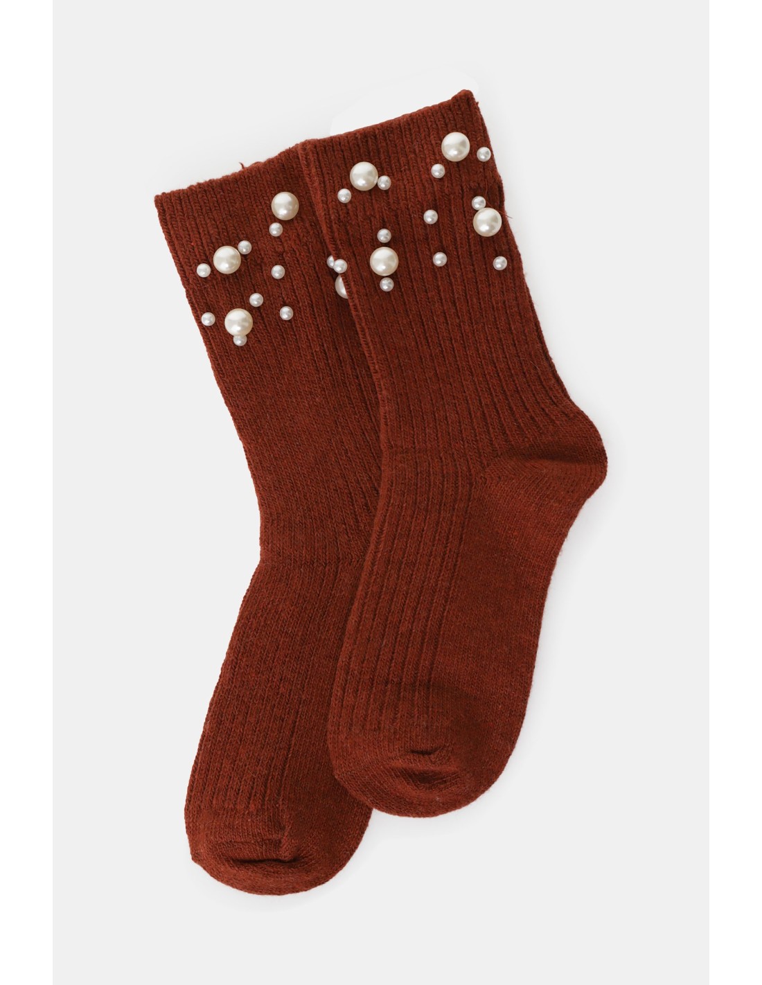 Meias em canelado com pérolas aplicadas