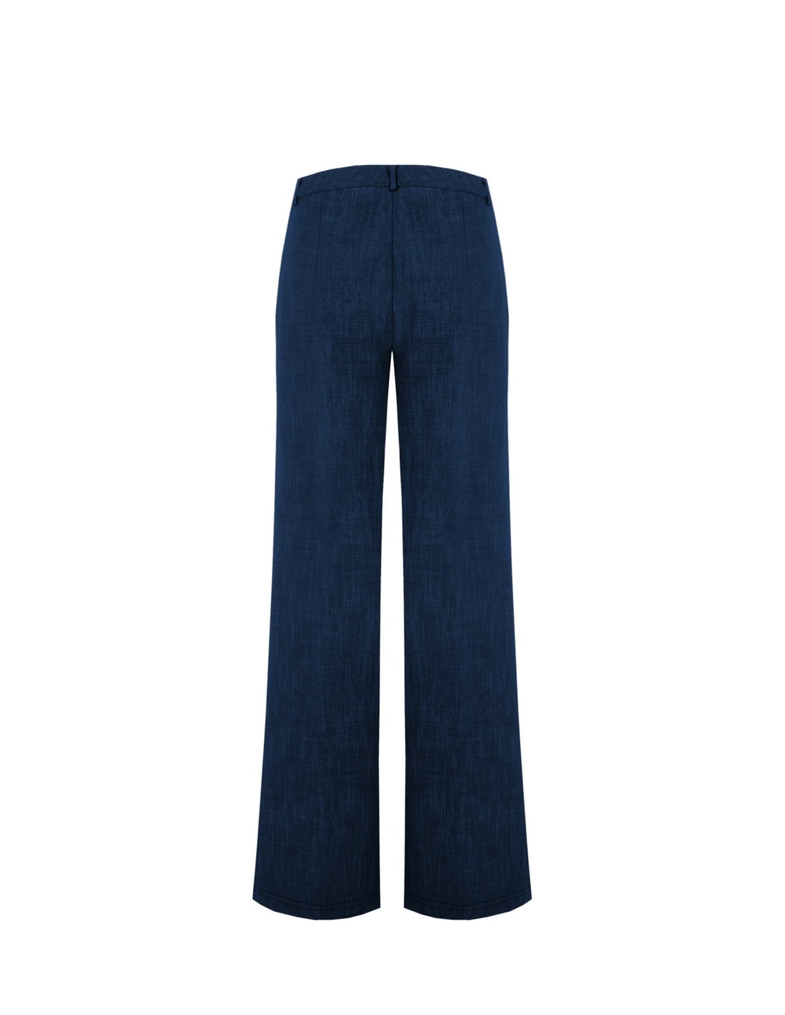 Lisonjeiro e fluido, com uma cintura regular e uma perna direita que emagrece. Confeccionada em ponto Milano stretch: sustenta sem apertar. Os bolsos laterais invisíveis e o fecho de botões com logótipo conferem-lhe um toque de elegância e estilo. Perfeito do escritório a um aperitivo: conforto elegante e uma silhueta requintada para todos os looks.