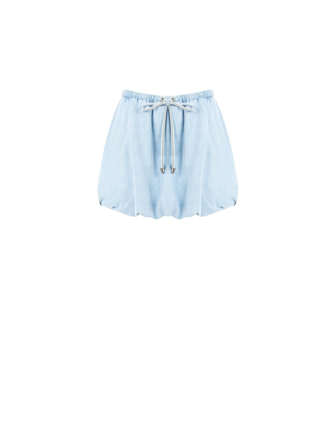 Saia curta de volume suave e corte confortável, pensada para realçar a silhueta com leveza. O denim de toque suave encontra um cós elasticado com cordão e bolsos práticos, para te acompanhar com estilo do dia a dia ao fim de semana.