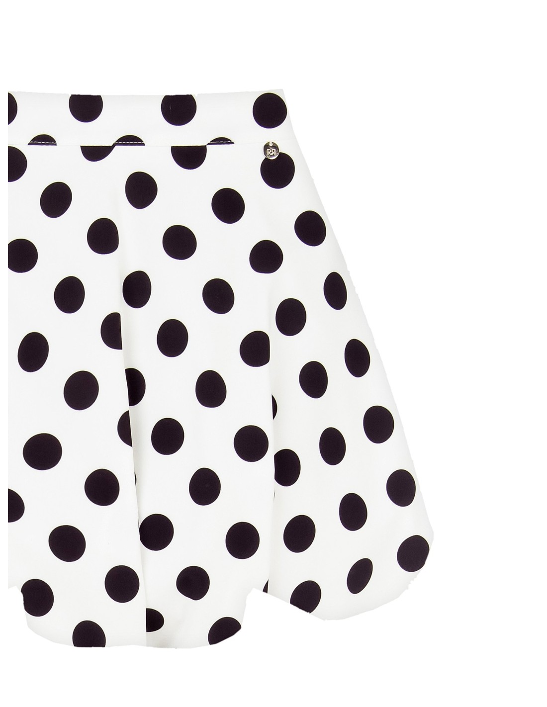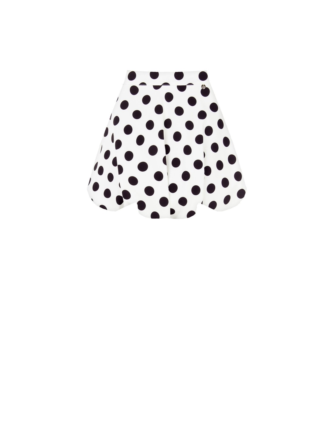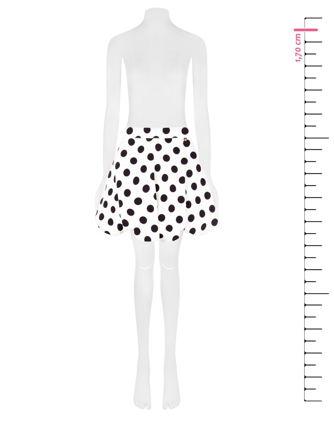 Saia curta de linha volumosa e corte estruturado, pensada para valorizar a cintura com conforto. O tecido compacto acaricia a silhueta, enquanto a estampa de pois e a bainha em balão acrescentam carácter. Perfeita para festas, aperitivos ou looks do dia a dia com um toque requintado.