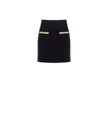 Minissaia Em Linha A De Tecido Técnico Com Pormenores Em Strass E Lantejoulas Rinascimento