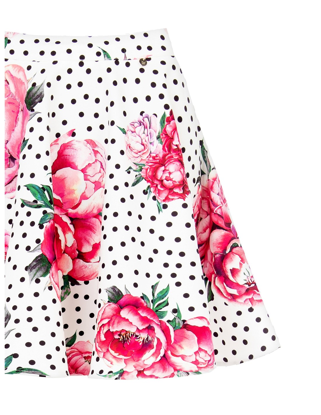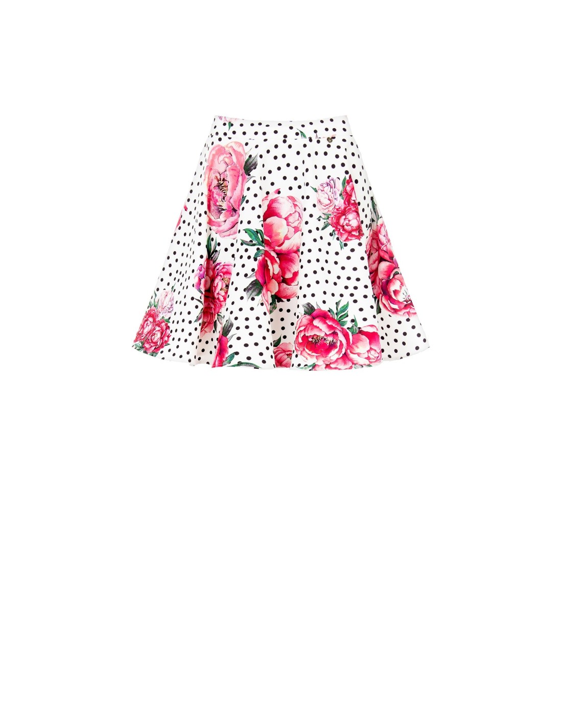 Minissaia Rodada Estampada Com Flores E Bolinhas Com Elástico Na Cintura Em Tecido Crepe Rinascimento