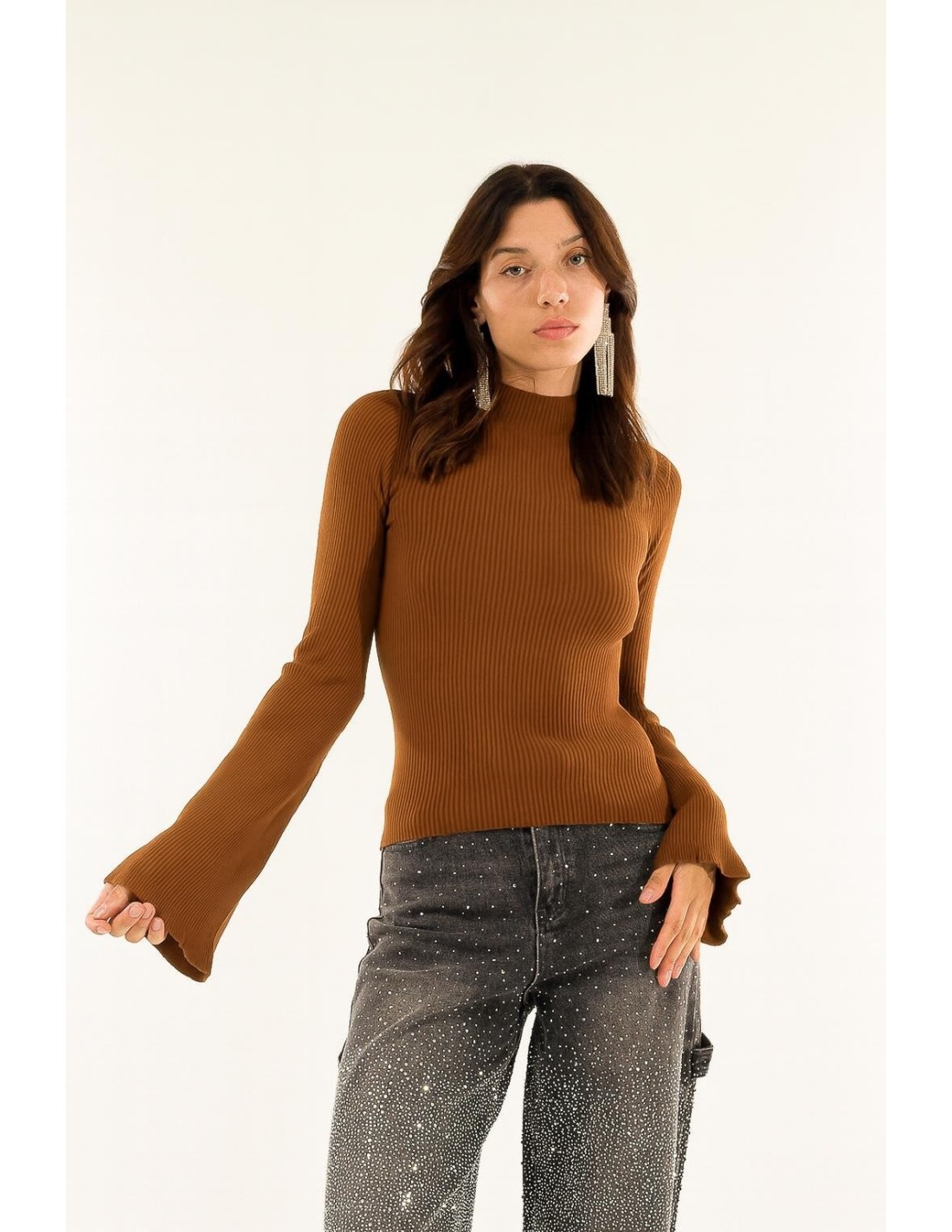 Seduz com uma silhueta envolvente e detalhes refinados: as mangas com folhos dão um toque romântico, enquanto o tecido canelado realça a sua feminilidade com elegância. Uma peça versátil, perfeita para elevar cada look com um estilo inconfundível.