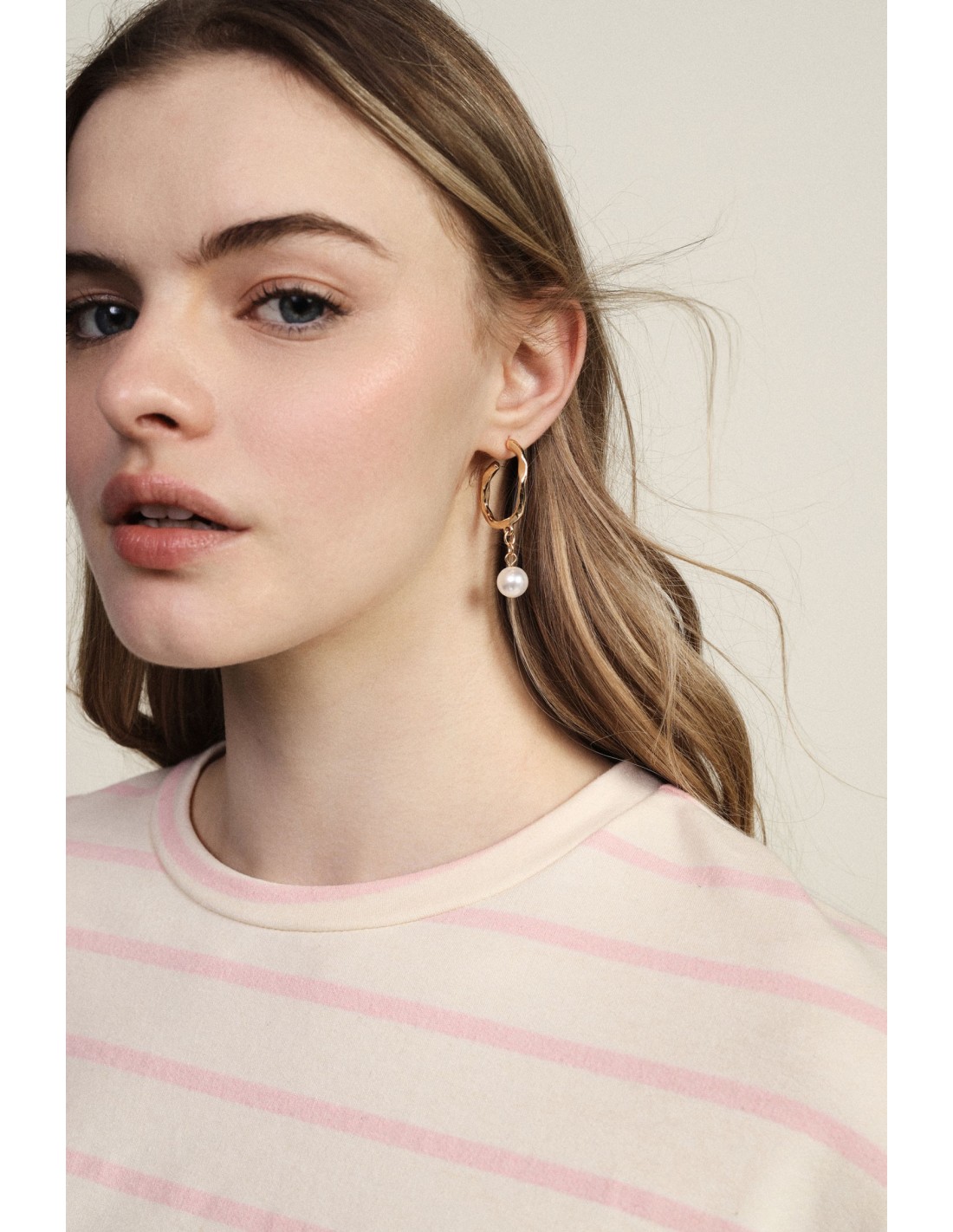Estes brincos de argola martelada destacam-se pelo seu design irregular e pelo pendente de pérola que confere movimento a cada gesto. Perfeitos para adicionar um toque refinado e original ao seu dia, vestem-se com facilidade graças ao fecho de pino e valorizam qualquer look, do mais simples ao mais elaborado.