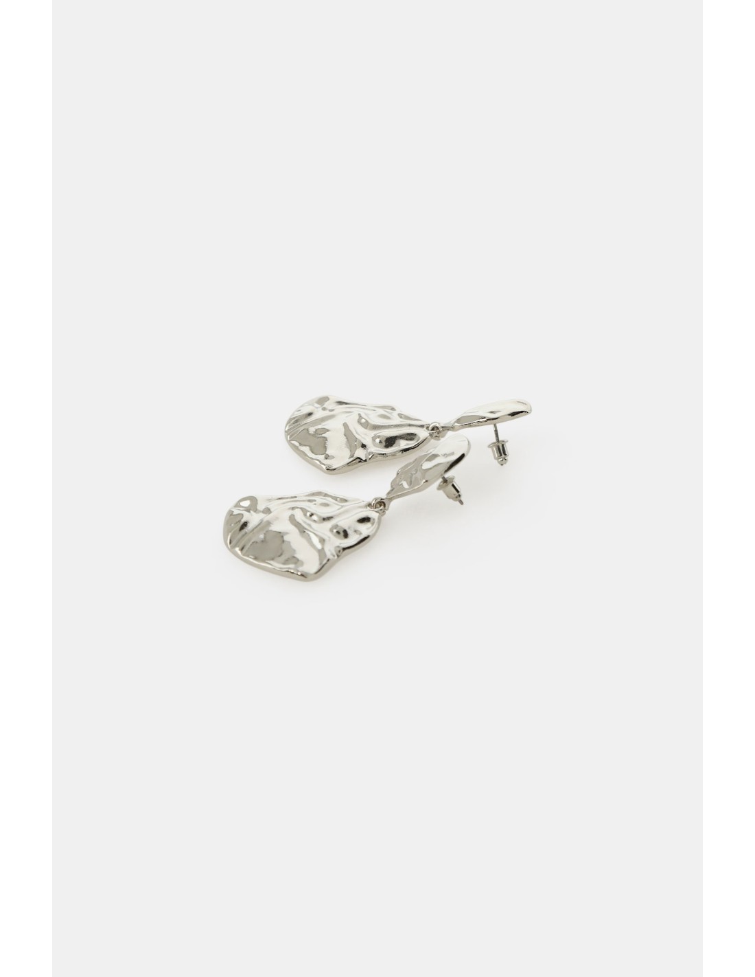 Os brincos pendentes de dois elementos com superfície irregular efeito martelado são perfeitos para realçar o rosto. O fecho de pino garante conforto e praticidade em qualquer ocasião. A forma fluida combina facilmente tanto com looks casuais como com os mais sofisticados.