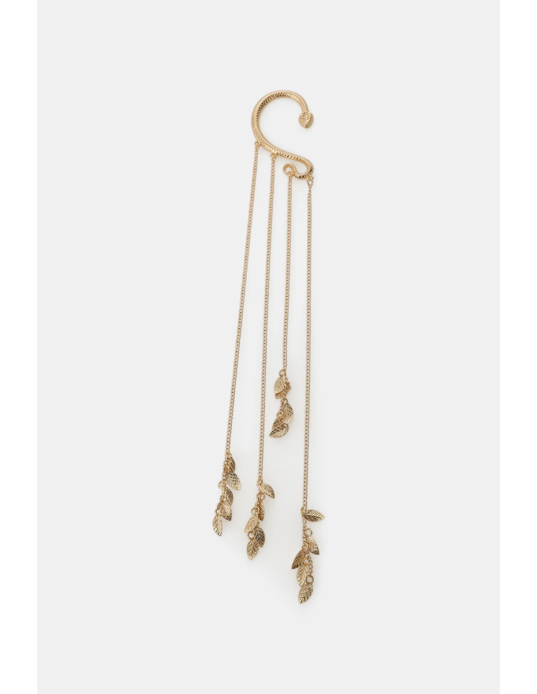 Este brinco ear cuff apoia-se elegantemente na orelha com uma sinuosa forma de serpente decorada por uma série de correntes finas. Cada corrente termina com pendentes em forma de folha trabalhados, para um efeito requintado e dinâmico que acompanha os teus movimentos e valoriza qualquer look do dia a dia com um toque original.