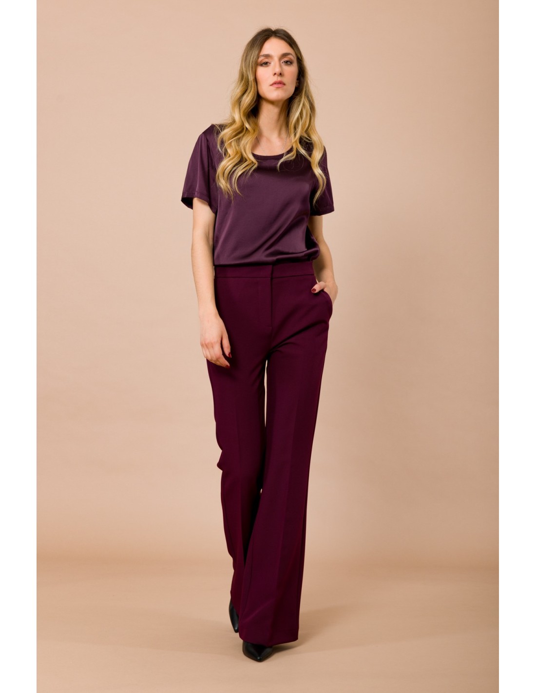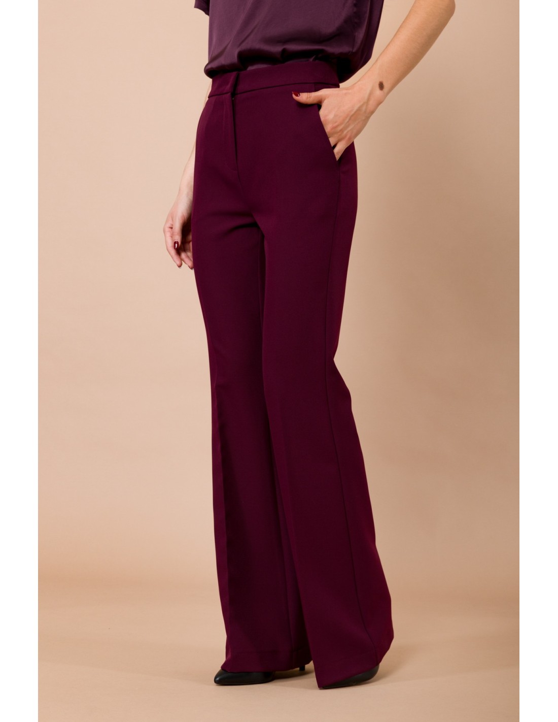 Maryley apresenta umas calças de corte evasé que alongam a silhueta e valorizam a cintura. Confeccionadas em tecido fluido e ligeiramente elástico para conforto durante todo o dia, apresentam bolsos à francesa e vinco frontal vincado. Fecho invisível à frente. Perfeitas para o escritório e os after-work sofisticados.