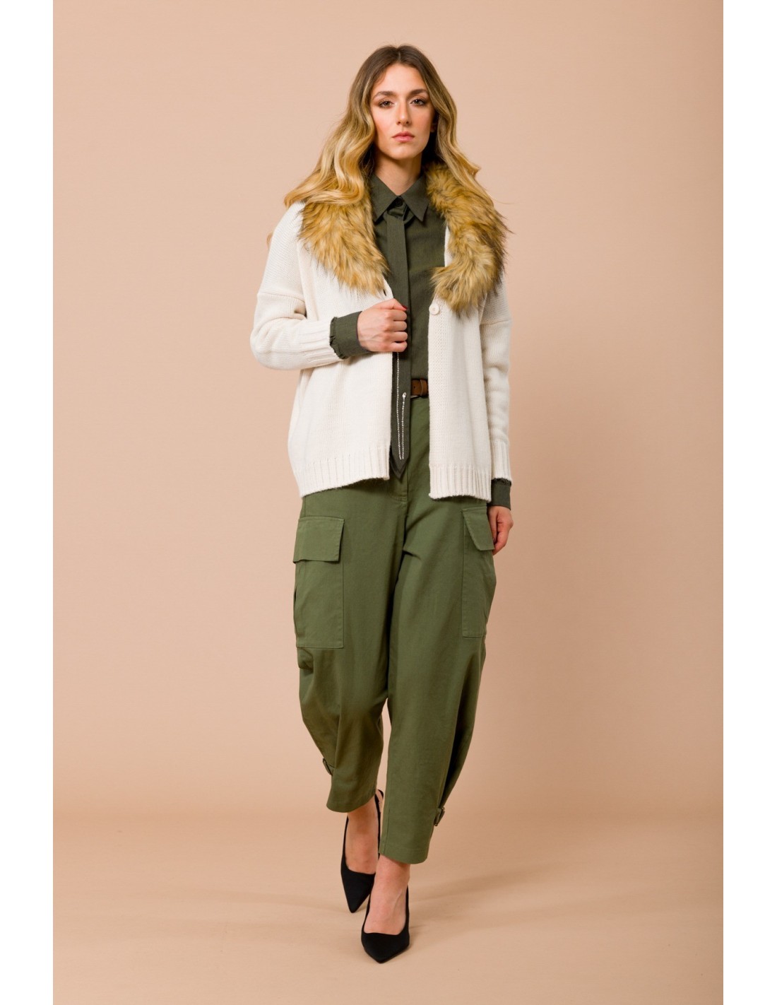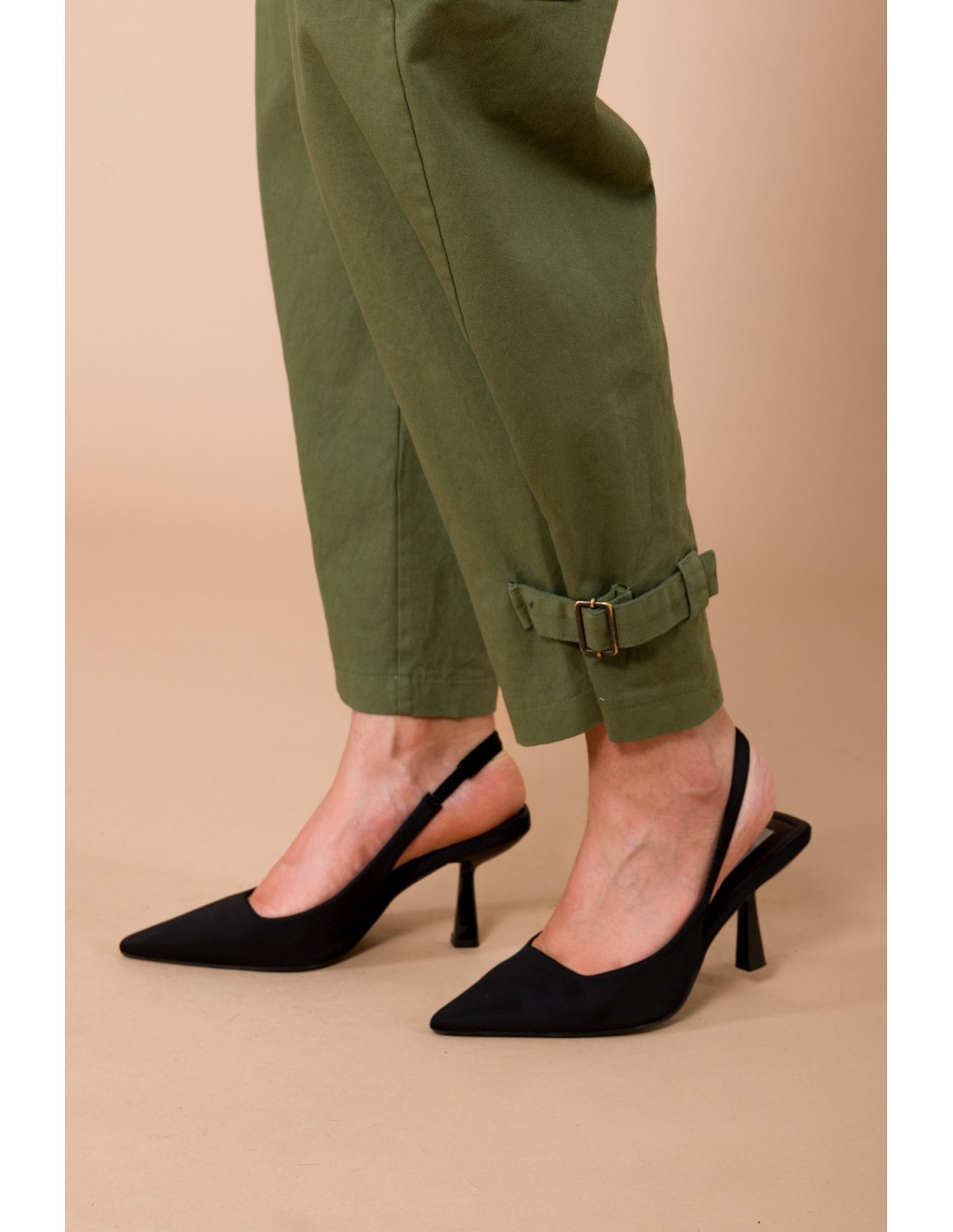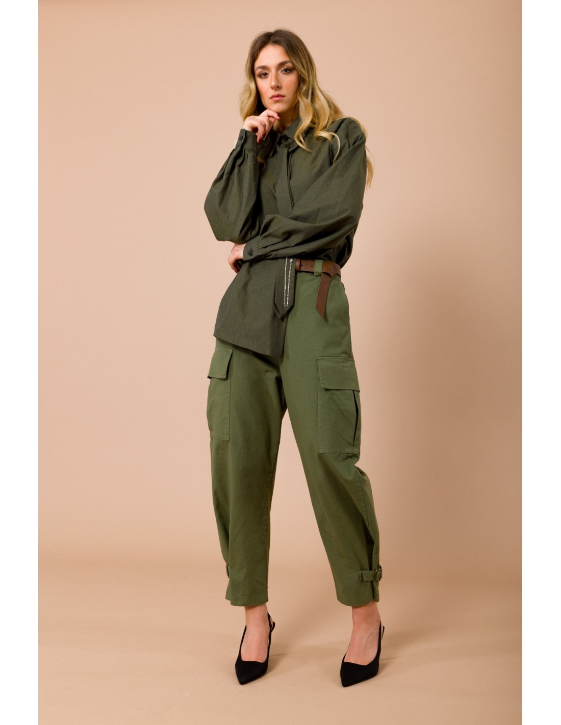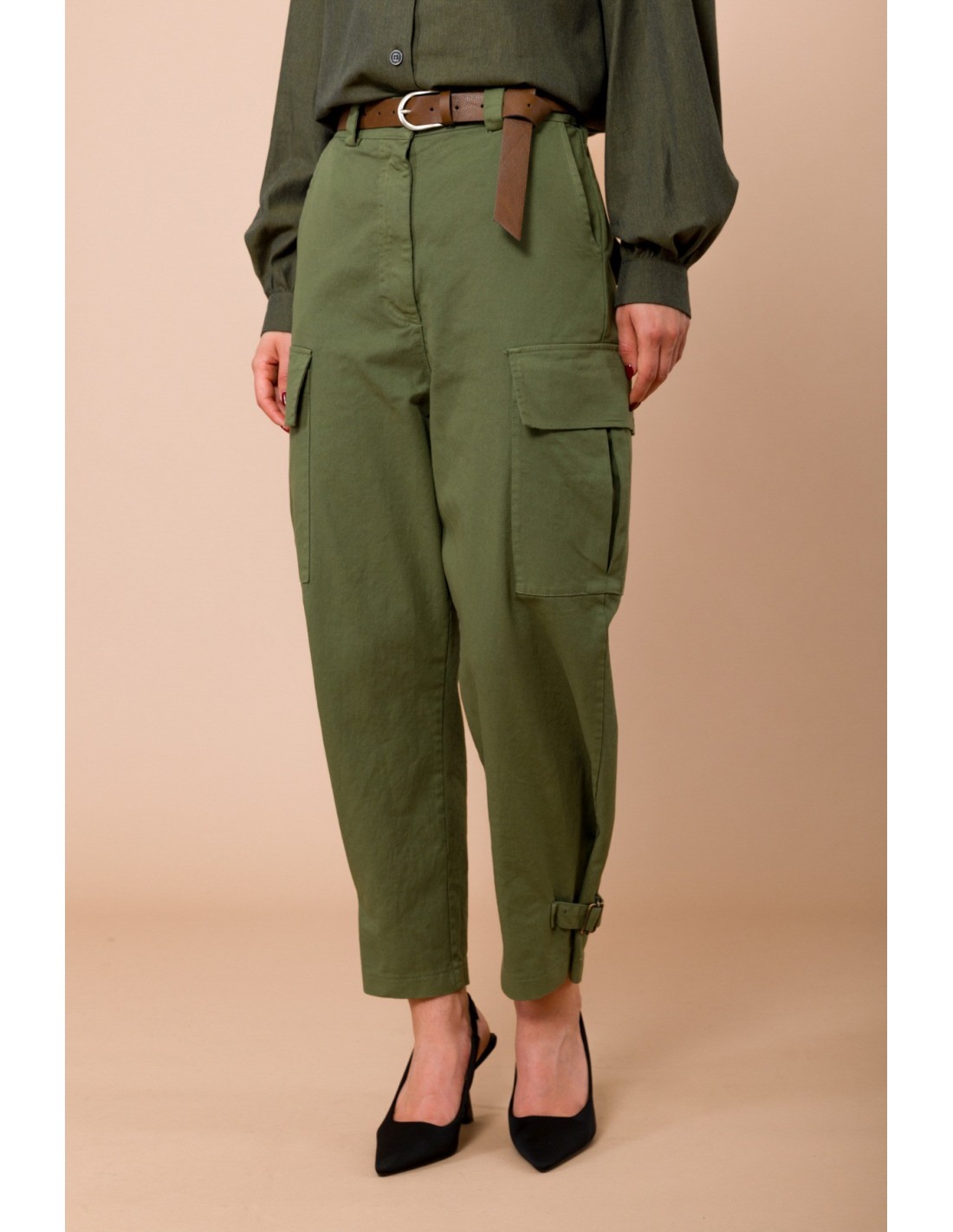 Calças Cargo Com Cordões Na Bainha. Elástico Na Cintura E Cinto Combinado Maryley