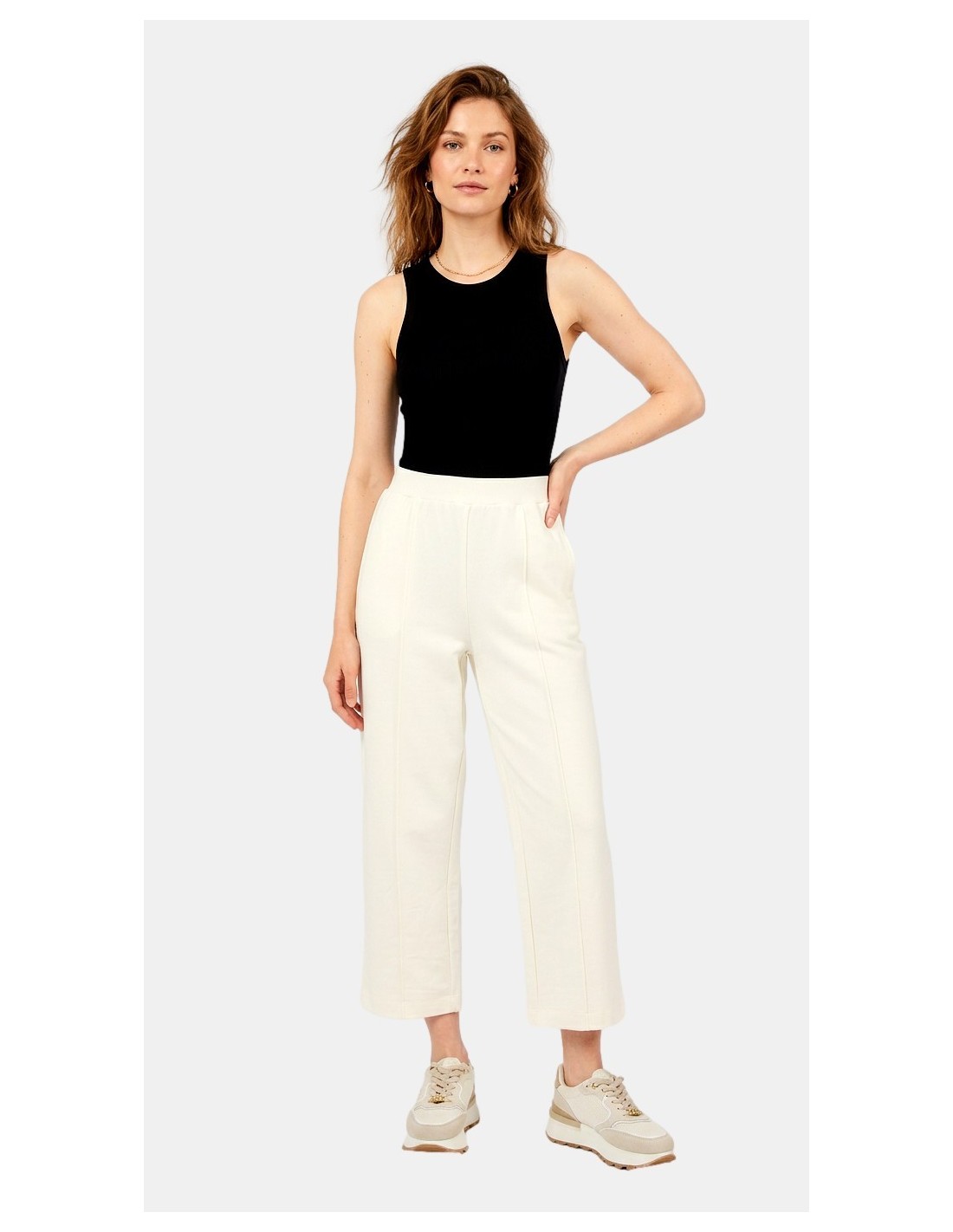 Calças cropped, de cor lisa, cintura regular.
