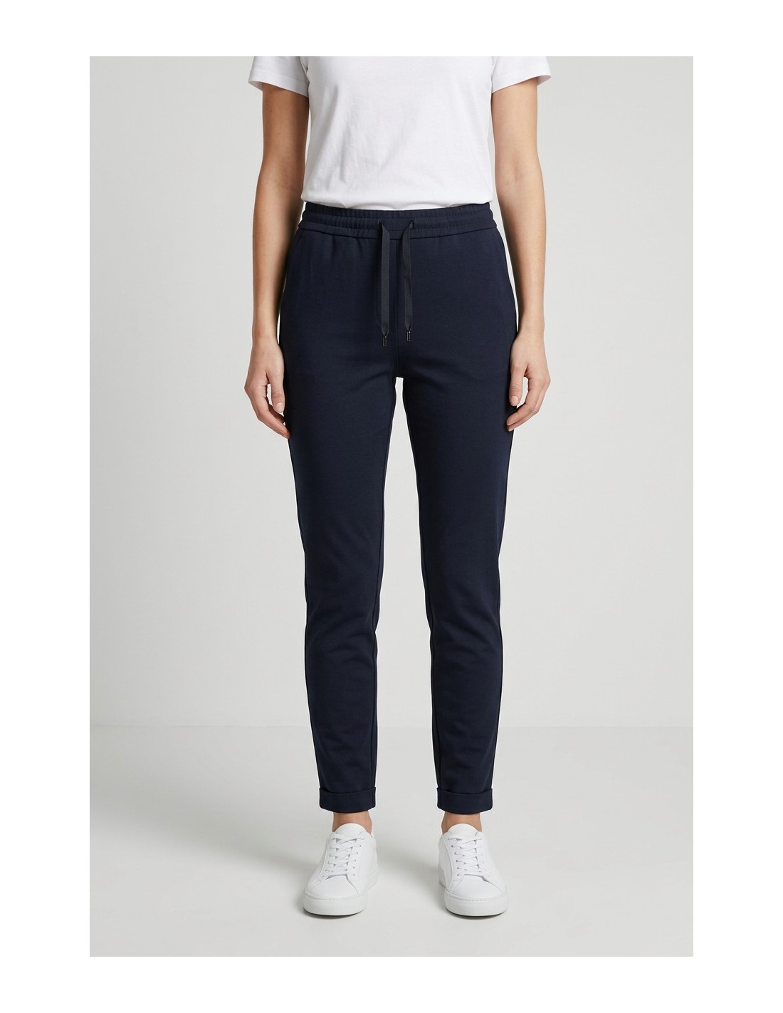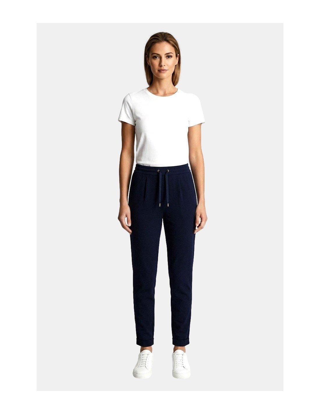 Calças de fato de treino, cintura regular com cordão, vira na bainha, cor lisa, ecossustentáveis.