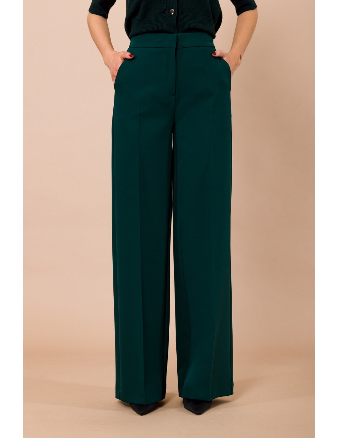 Calças palazzo com elástico no centro traseiro Maryley