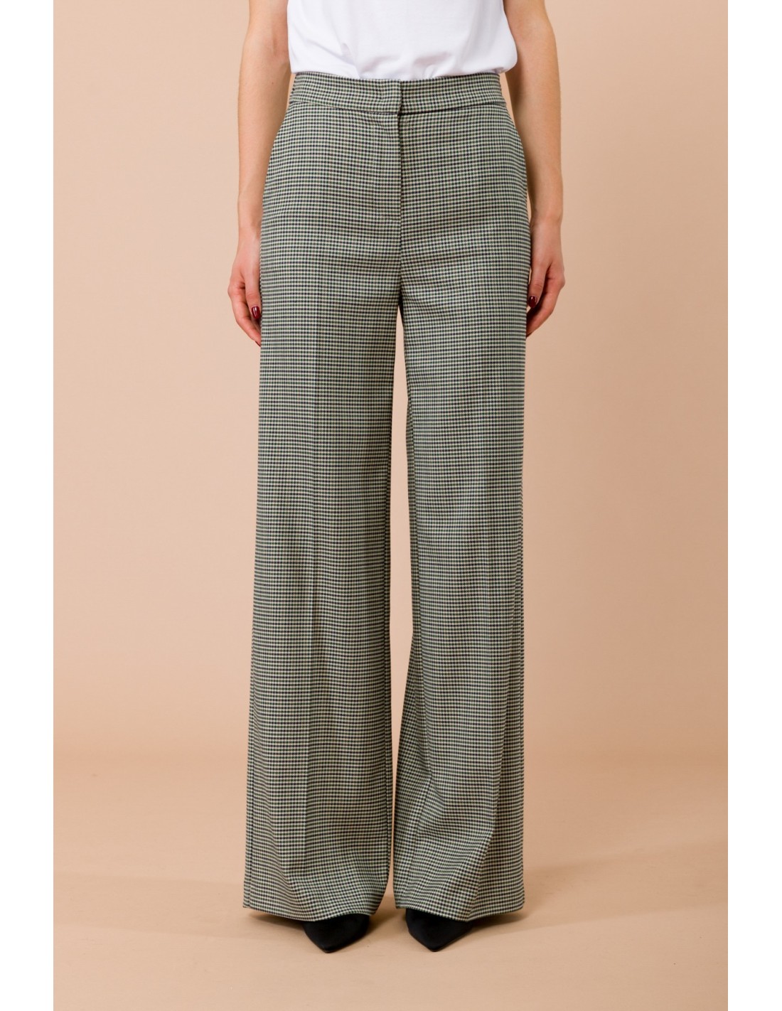 Calças Palazzo Pied-De-Poule Com Elástico Na Parte De Trás E Bolsos À Francesa Maryley