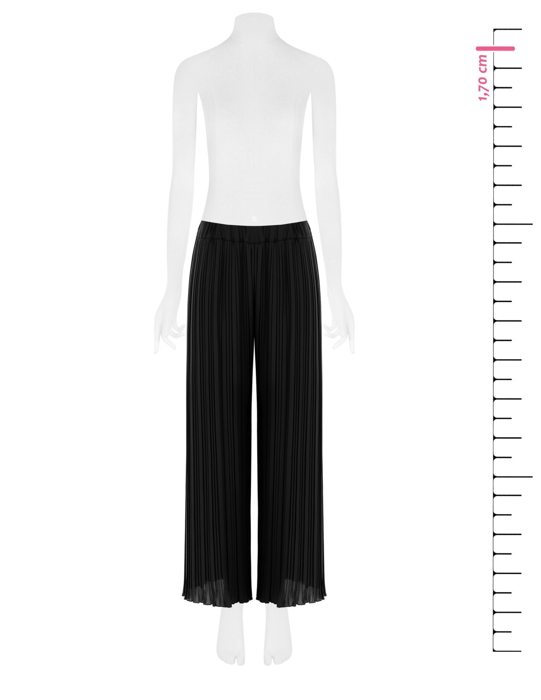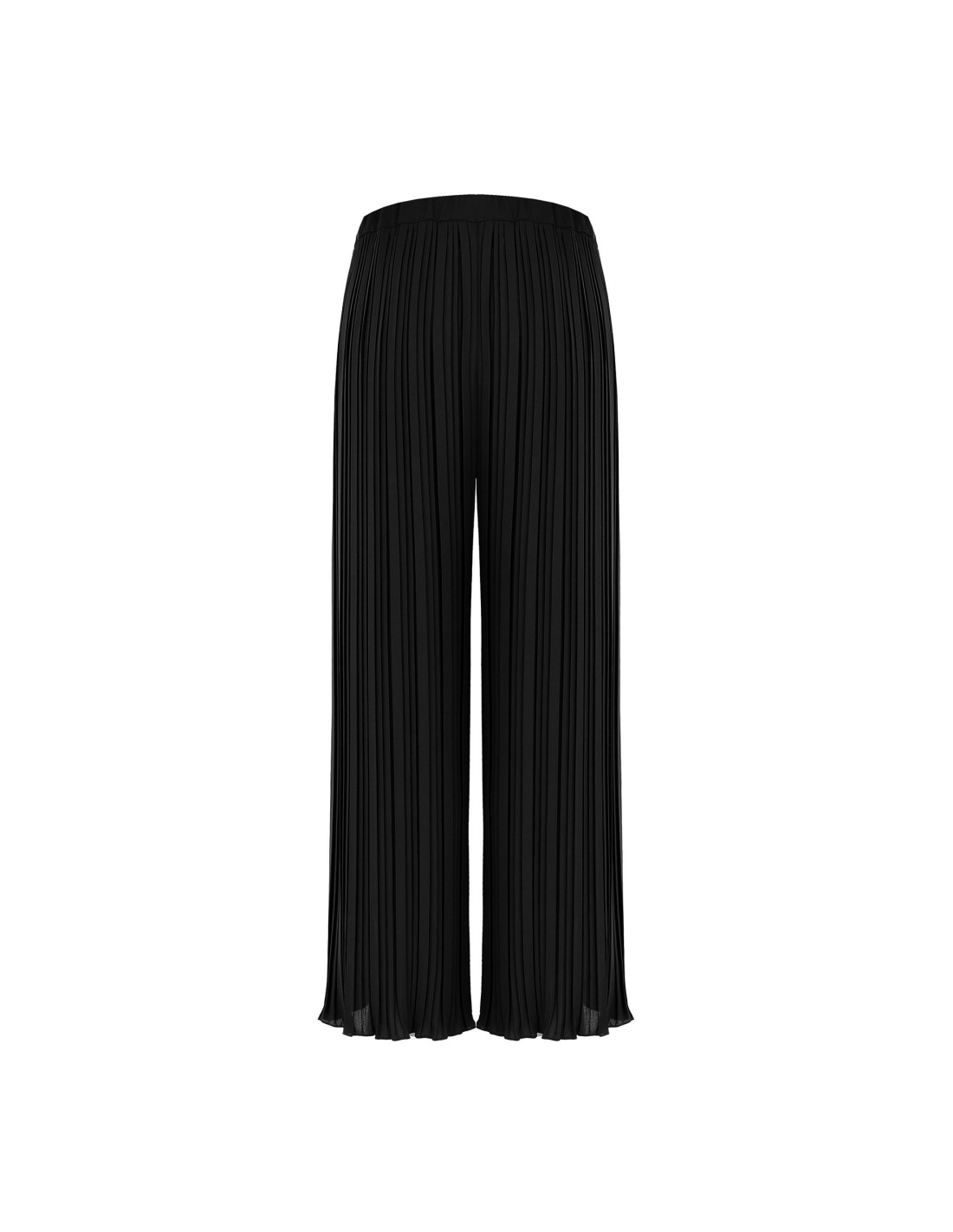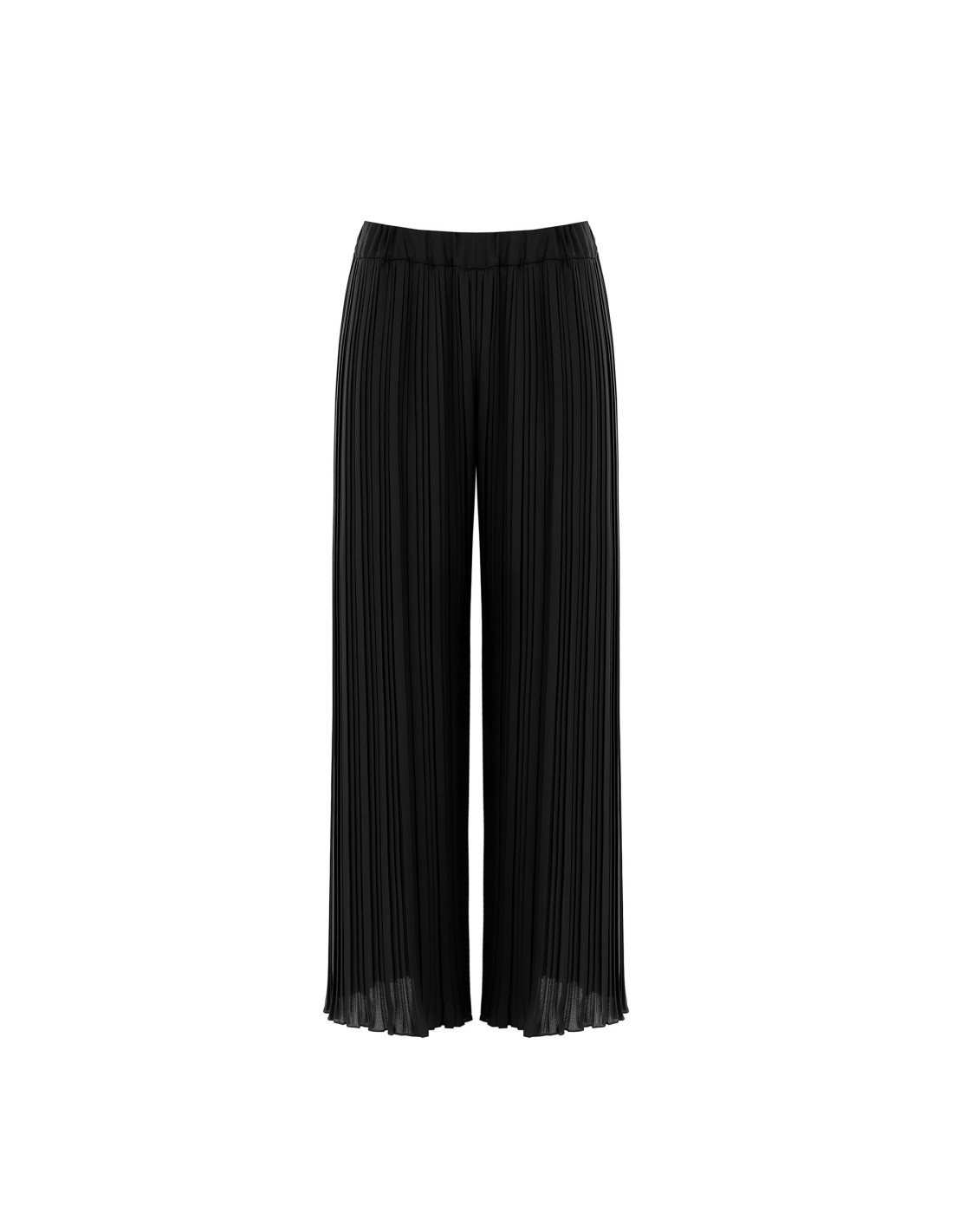 Linhas amplas e fluidas para um caimento leve que alonga a silhueta. O tecido plissado acaricia o movimento com um conforto natural, enquanto a cintura elástica e a bainha macia conferem praticidade e charme. Perfeito do escritório ao aperitivo, com elegância descontraída.