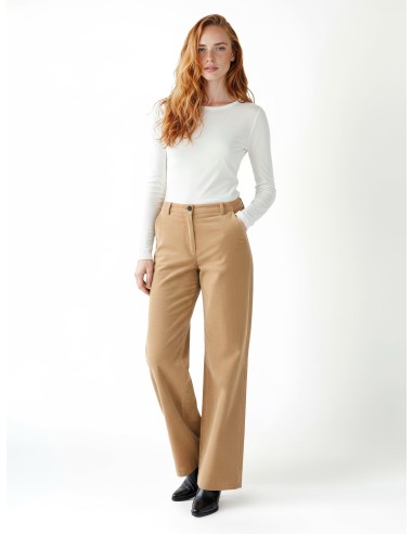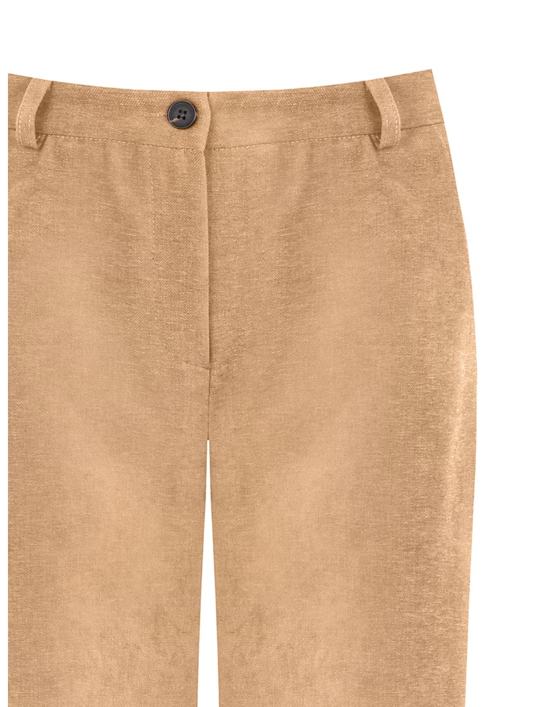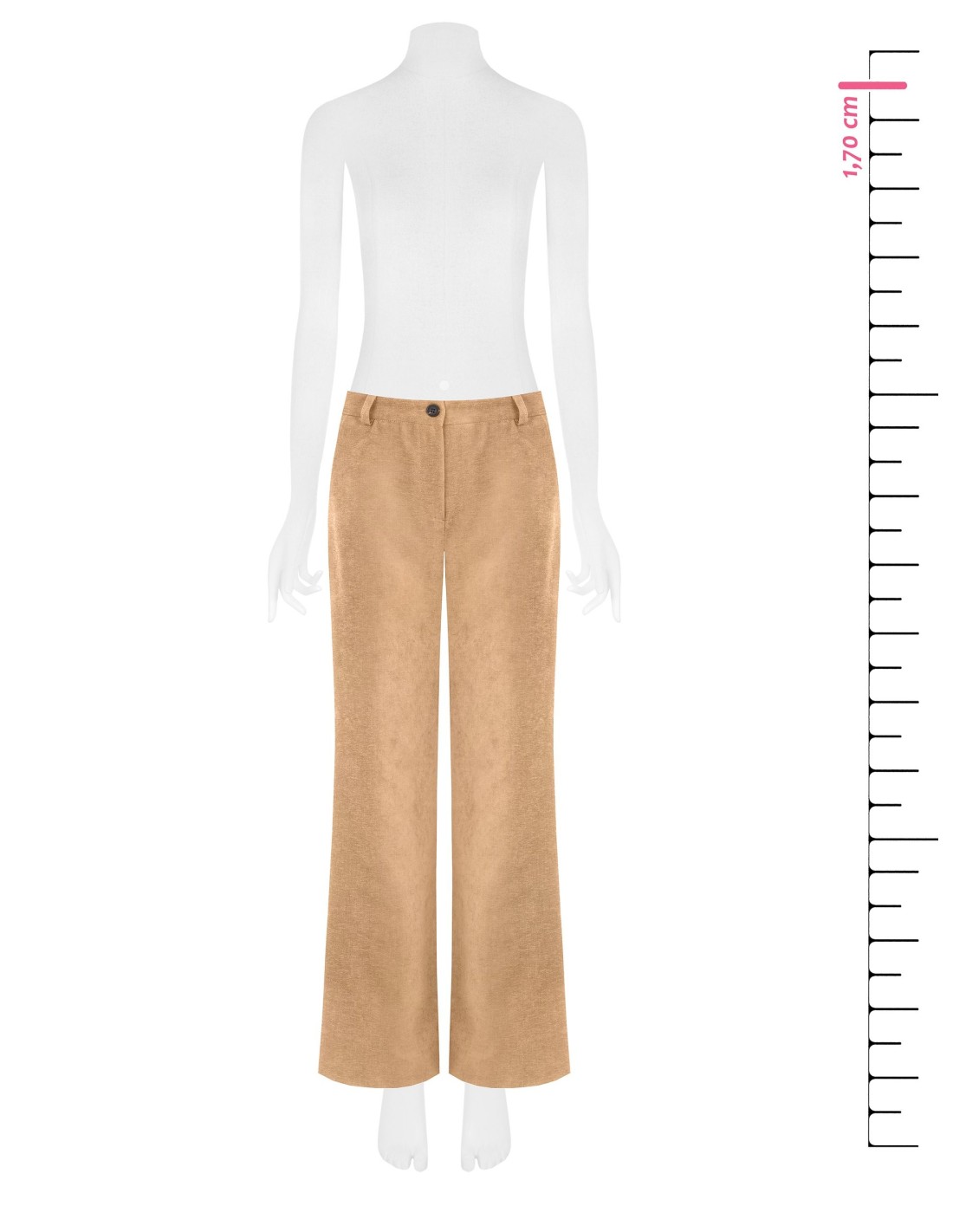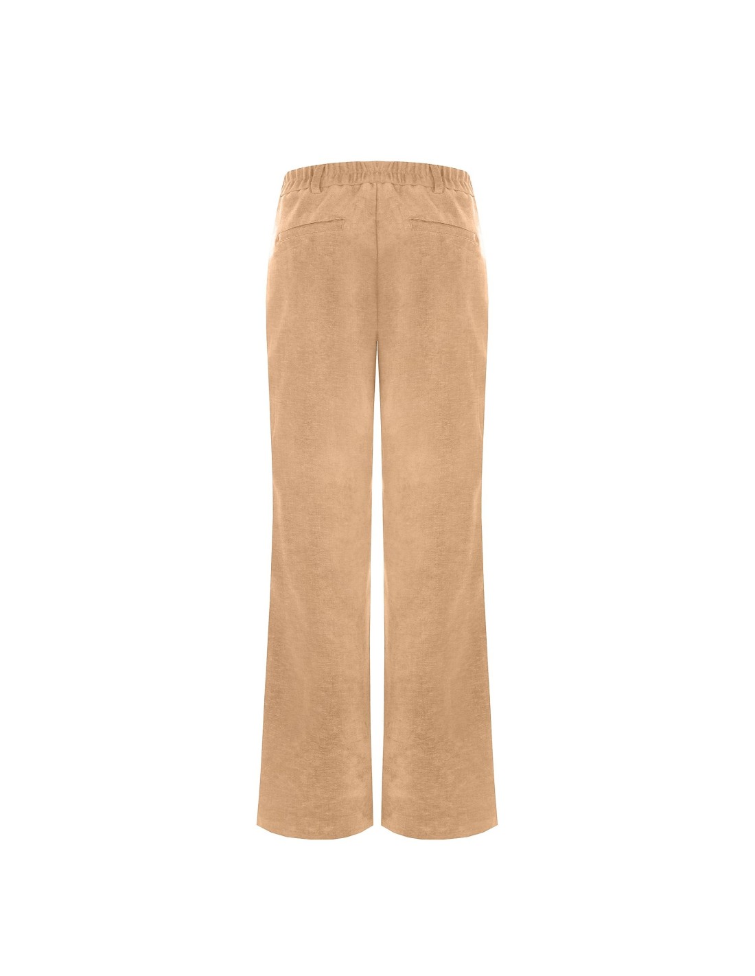 Rinascimento apresenta um modelo de perna reta e cintura média, com um corte macio que alonga sem apertar. Confeccionado em veludo liso com um toque elástico para conforto diário. Fecho frontal com botão e faixa elástica na parte de trás, bolsos embutidos. Perfeito para o escritório e para looks do dia a dia refinados.