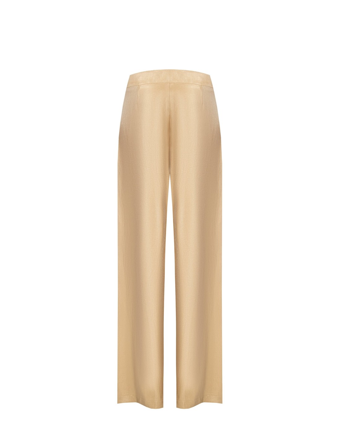 Cintura alta e perna ampla que alonga a silhueta, em tecido fluido com efeito acetinado para um conforto leve durante todo o dia. Pences frontais, botão revestido e pequeno detalhe metálico assinado Rinascimento. Perfeitos do escritório ao aperitivo, com blazer ou top em destaque.