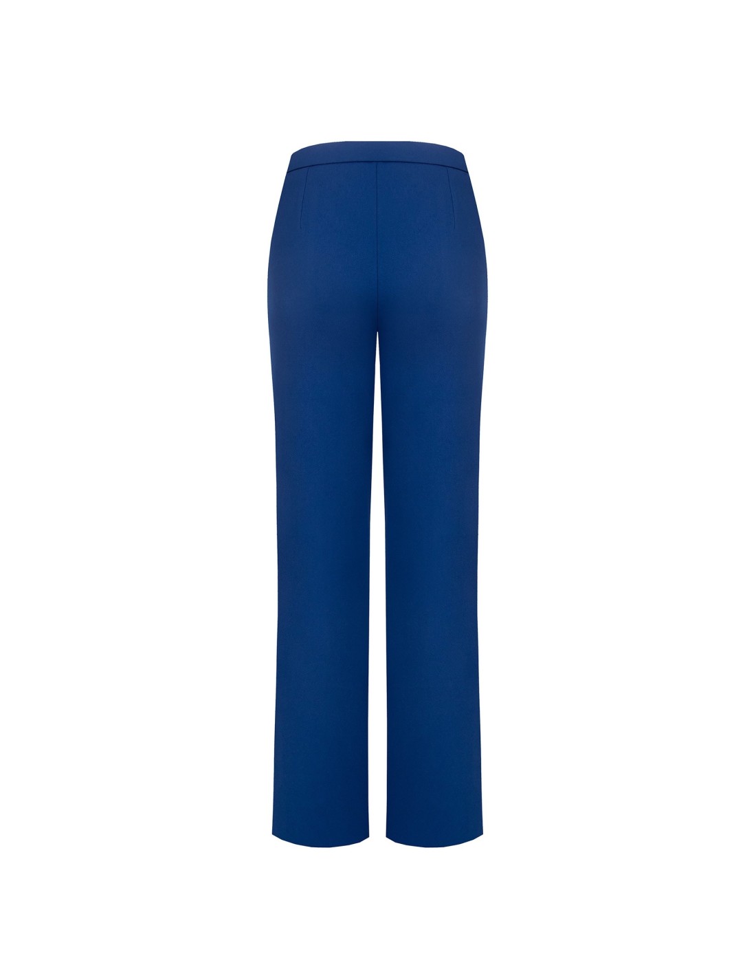 Calças de cintura alta em tecido fluido ligeiramente elástico, com perna reta que alonga a silhueta. As pregas centrais e os bolsos embutidos acrescentam um toque de alfaiataria, enquanto o fecho invisível garante uma linha limpa. Perfeitas do escritório ao aperitivo.