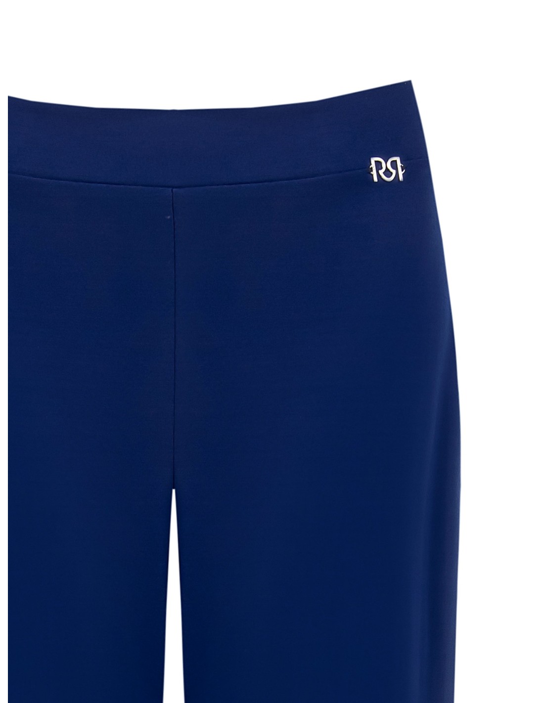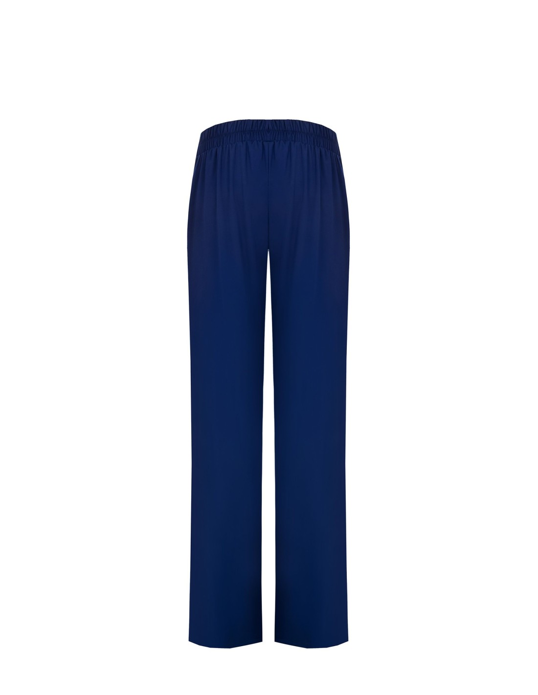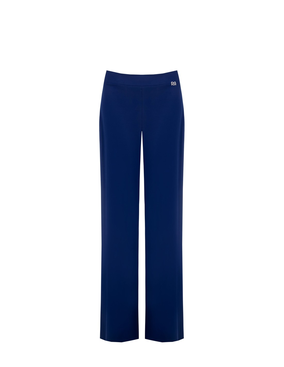 Corte direito e suave que alonga a perna, em tecido fluido e elástico para um ajuste confortável durante todo o dia. Cintura plana à frente e elástico na parte de trás, enriquecida com um mini logótipo metálico. Perfeita para o escritório e para looks do dia a dia cuidados.
