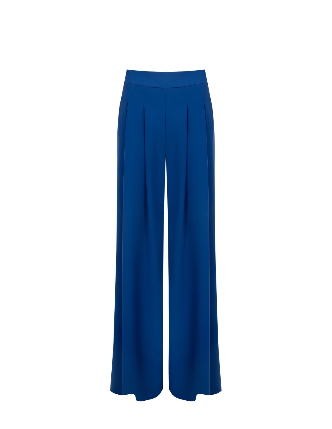 Modelo palazzo de cintura alta em tecido fluido tipo crepe, que desliza suavemente e alonga a silhueta. As pinças frontais e o cinto moldado definem a cintura com elegância. Perfeito do escritório ao aperitivo, com sandálias ou sapatos de salto.