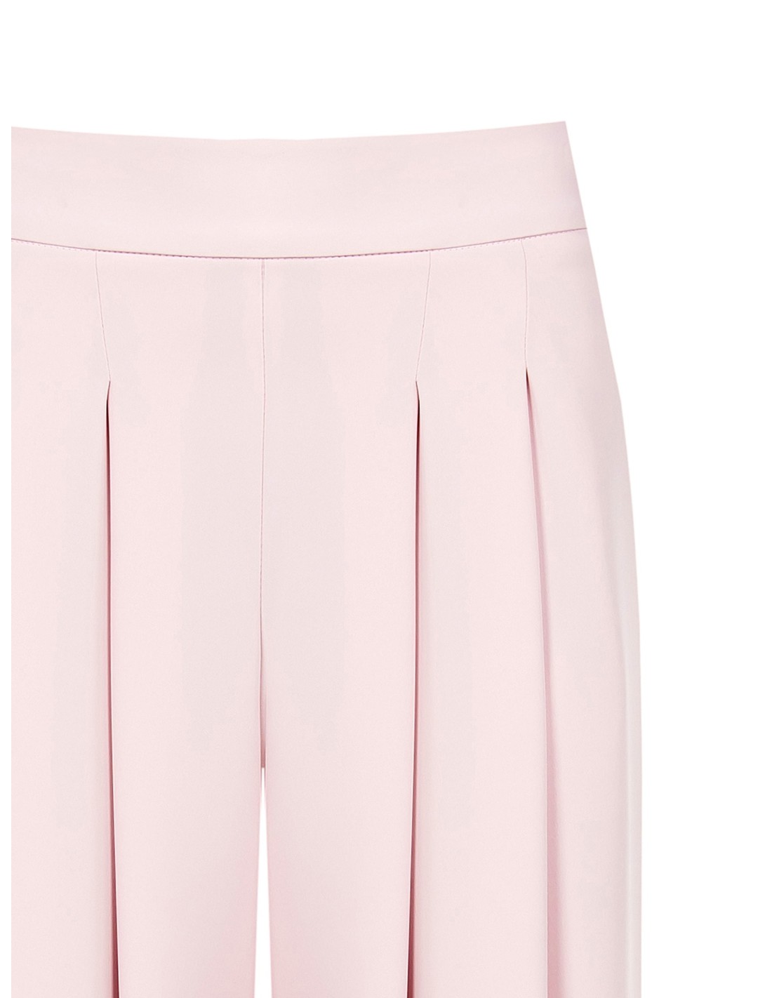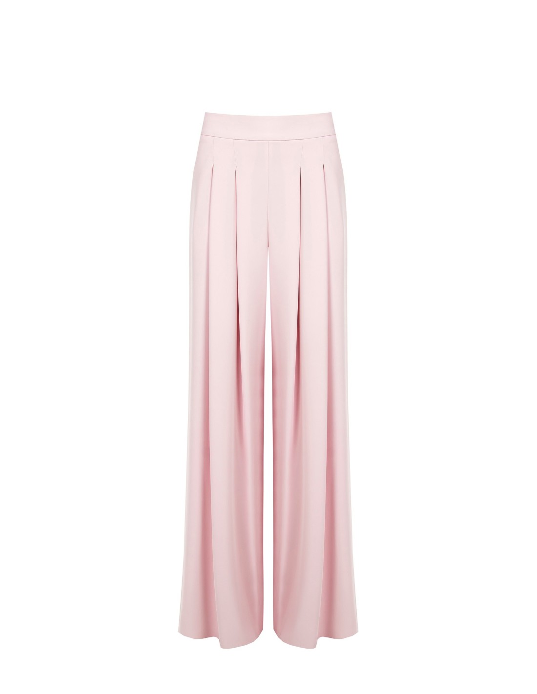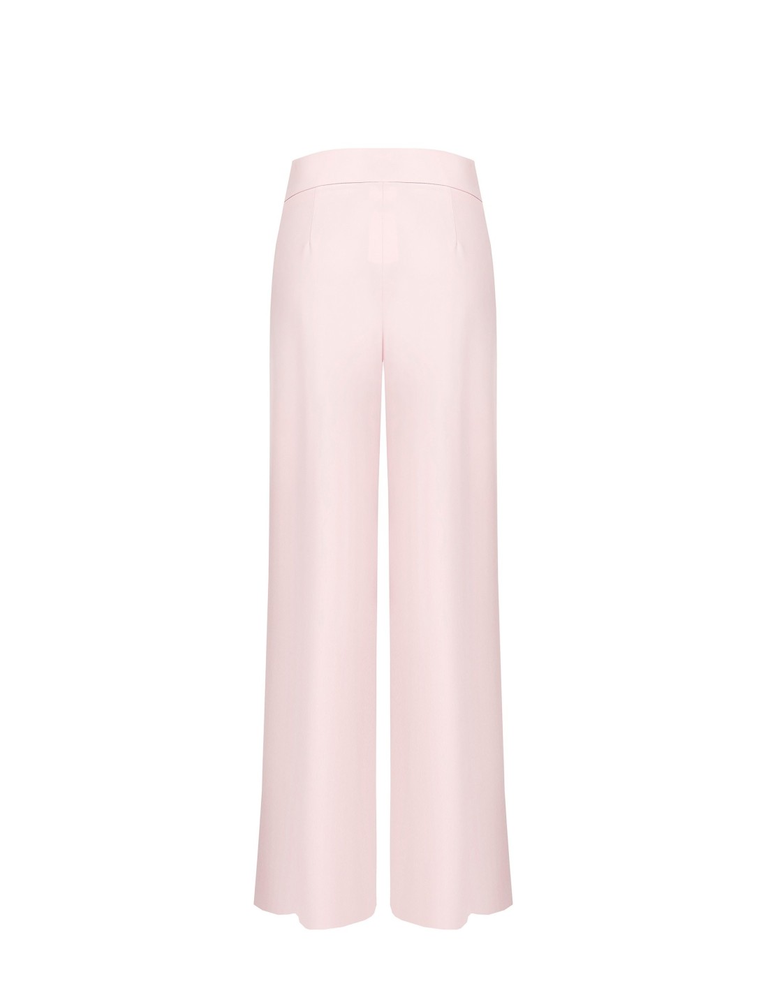 Modelo palazzo de cintura alta em tecido fluido tipo crepe, que desliza suavemente e alonga a silhueta. As pinças frontais e o cinto moldado definem a cintura com elegância. Perfeito do escritório ao aperitivo, com sandálias ou sapatos de salto.