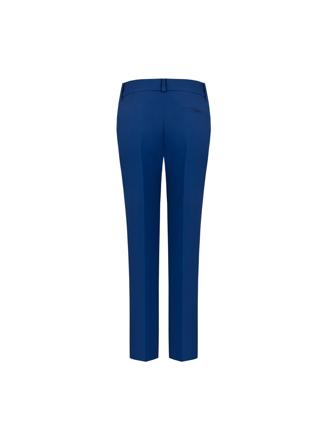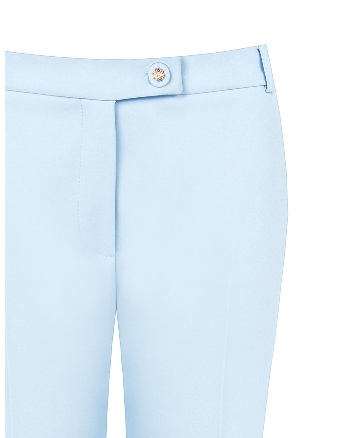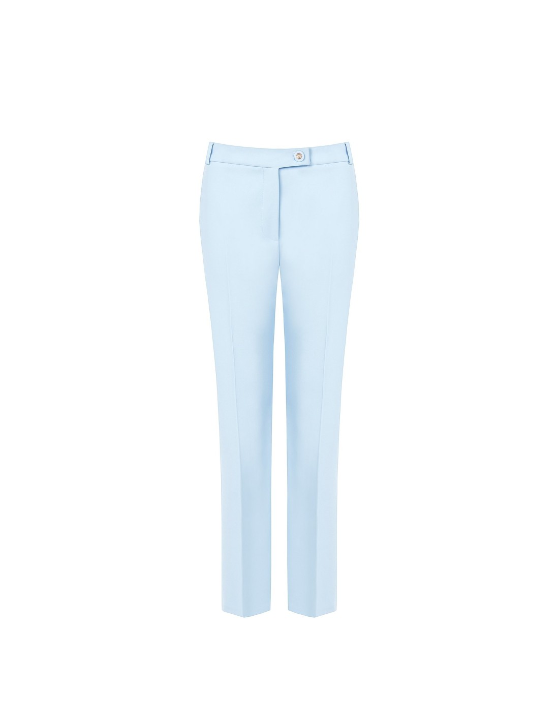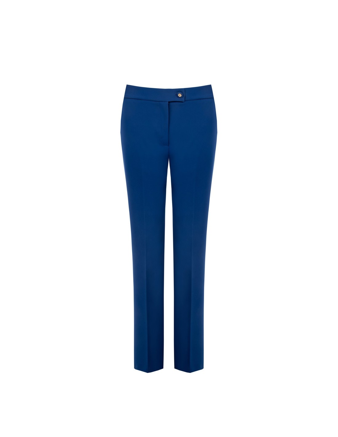 Corte direito e cintura média para uma silhueta esguia mas confortável, em tecido fluido ligeiramente stretch. O botão-joia em metal e o bolso embutido na parte traseira acrescentam um toque de alfaiataria. Perfeito para o escritório e para os teus after‑work mais requintados.