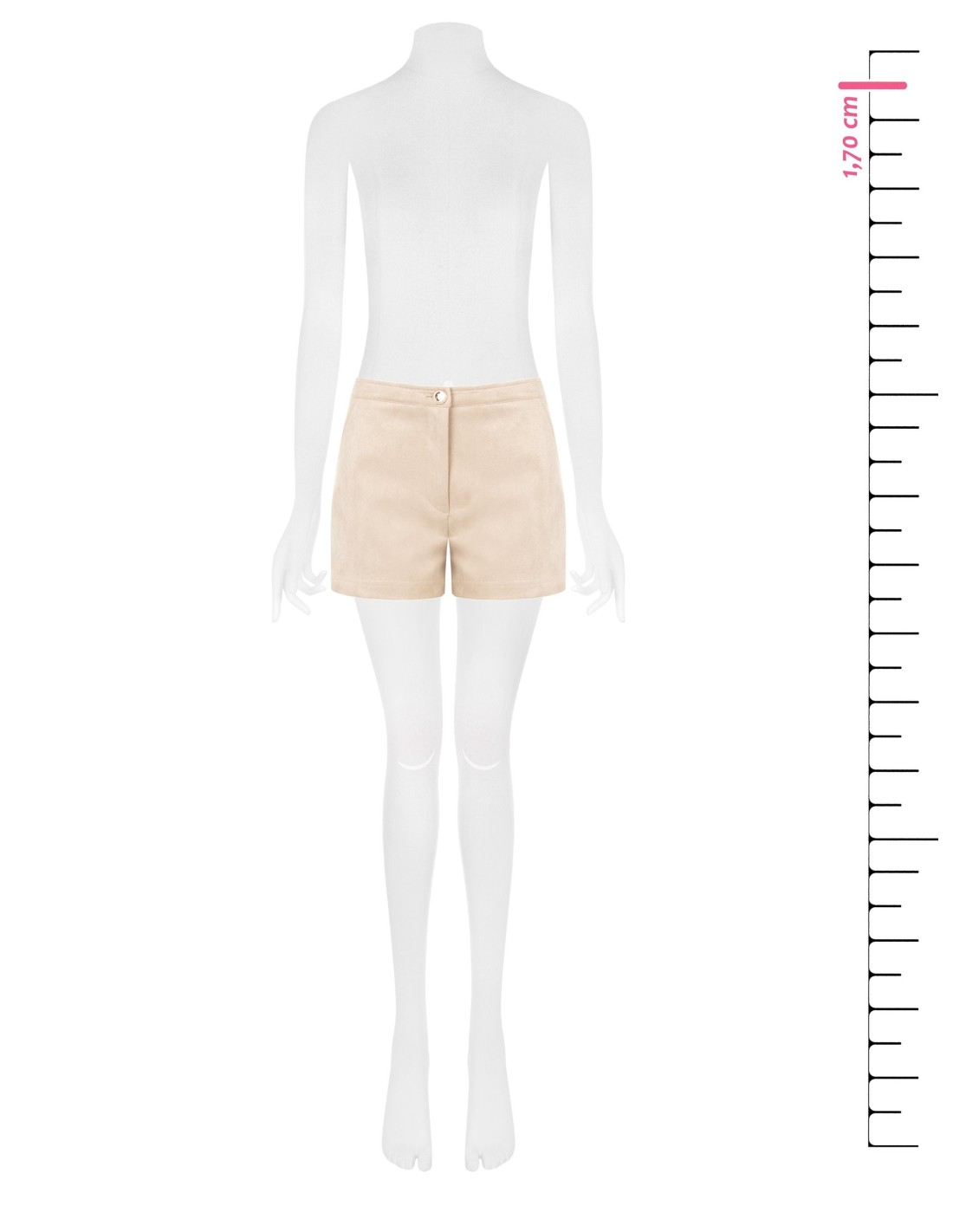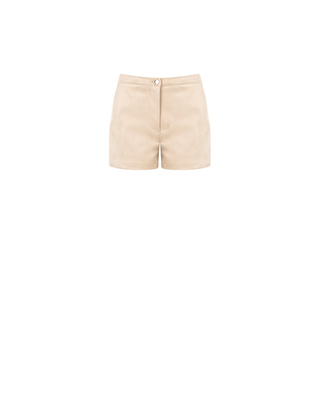 Short de cintura regular em suave pele sintética camurçada, de corte direito que alonga a perna sem apertar. Fecho frontal com botão-joia e bolsos laterais discretos. Perfeito com camisas e blazers durante o dia, ou com top e sandálias para o aperitivo.
