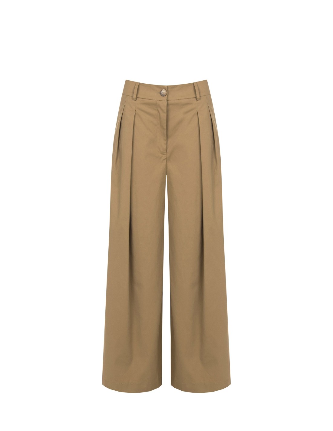 Modelo wide leg com um corte macio e fluido, em tecido liso e compacto que acompanha os movimentos com conforto. As pregas na frente e o fecho com botão definem a silhueta com elegância. Perfeito para o escritório e para looks do dia a dia de gosto requintado.