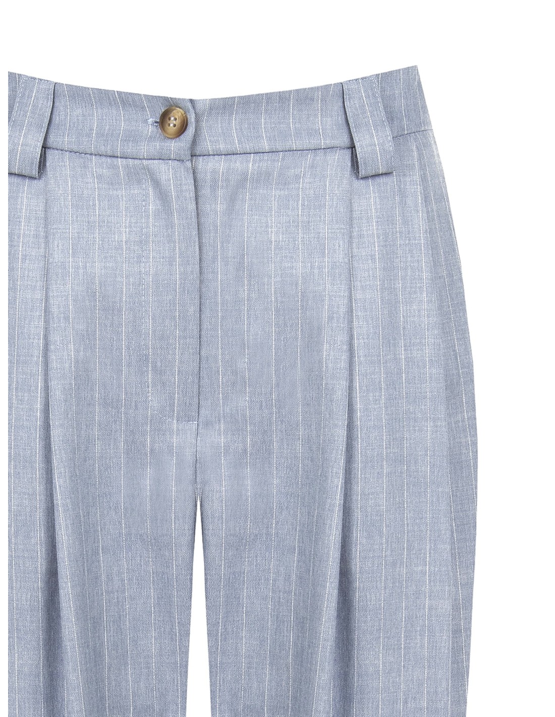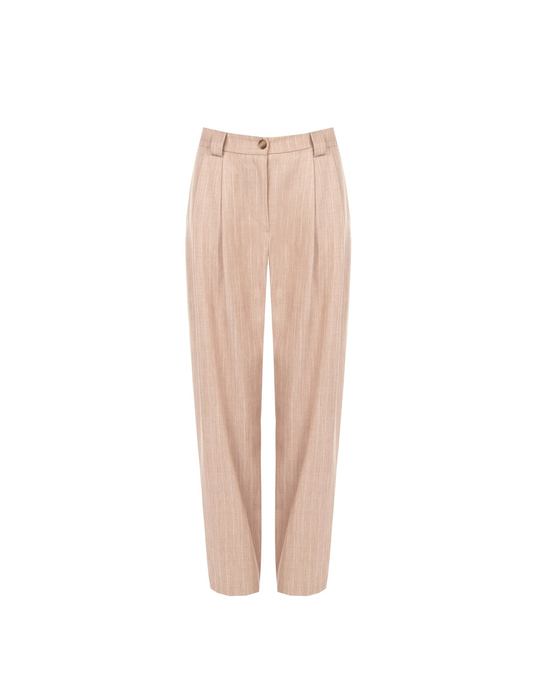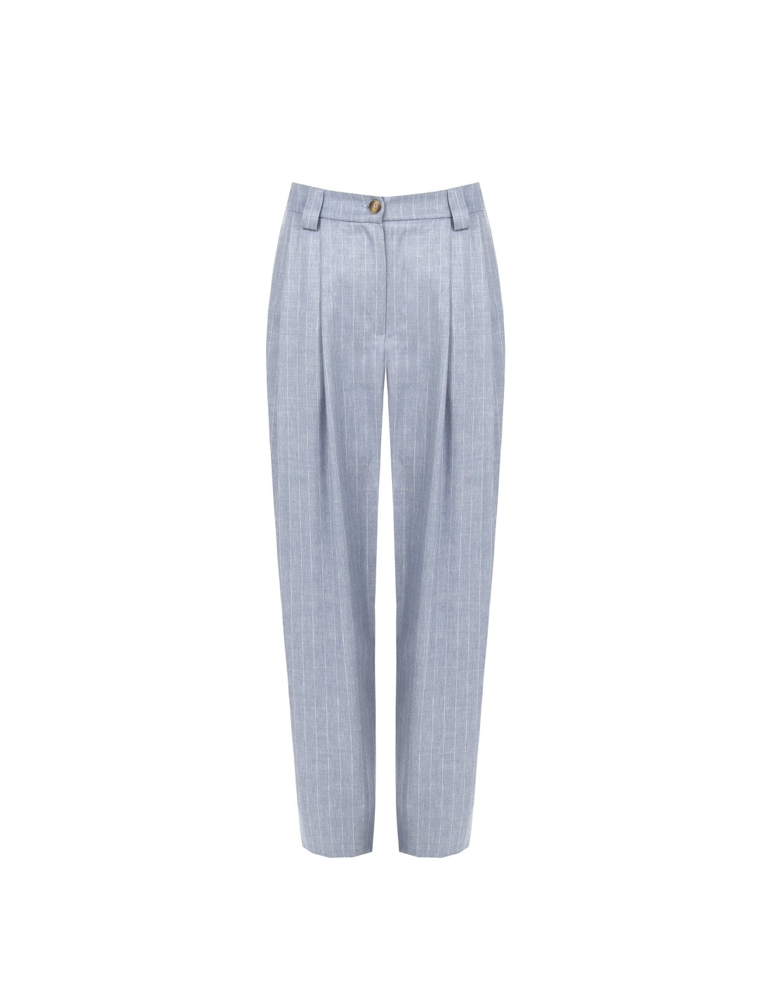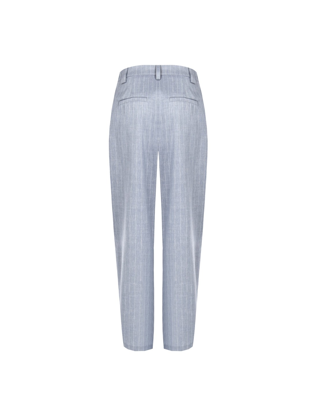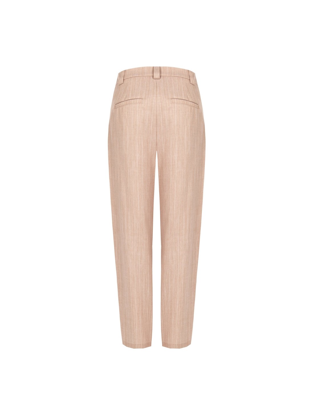 Corte sartorial e ajuste suave que acompanha a silhueta com conforto. O tecido leve com textura risca-de-giz confere personalidade, enquanto as pences frontais e o fecho com botão definem a cintura. Perfeito para o escritório e para looks do dia a dia de gosto refinado.