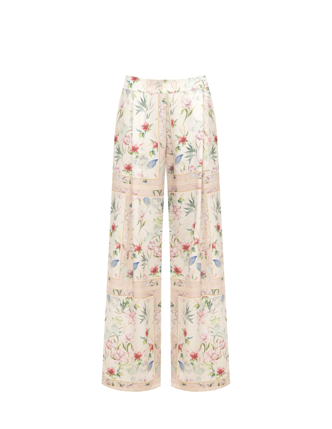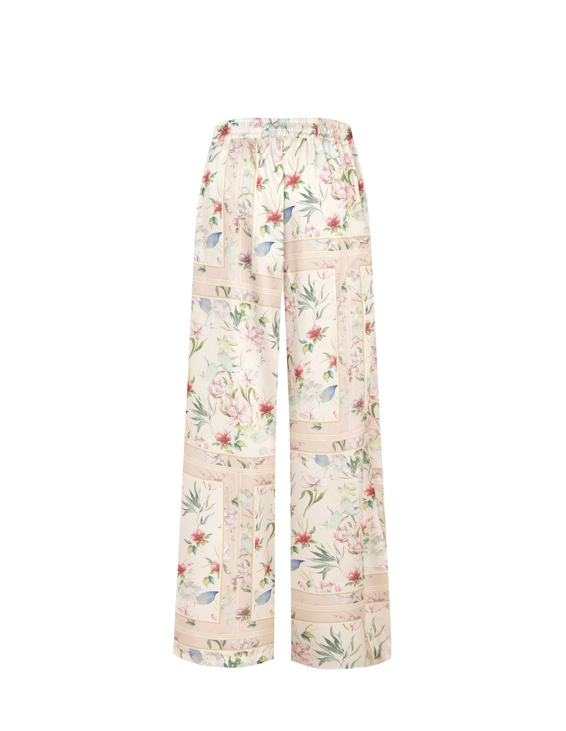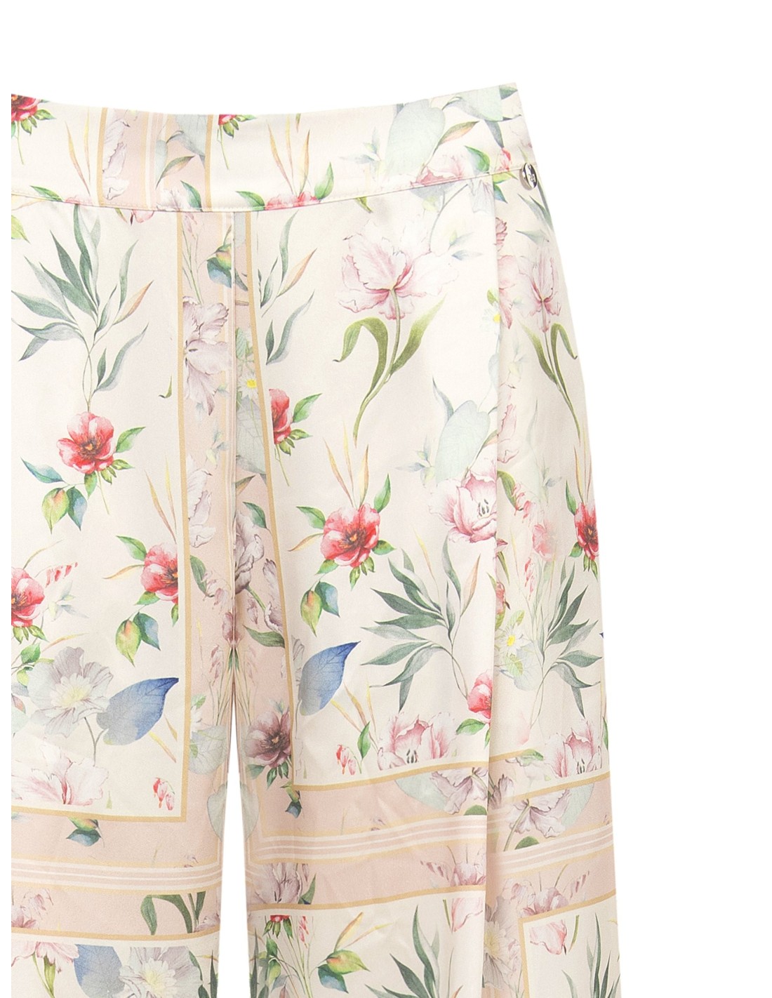 Calça palazzo de corte fluido e leve, em tecido acetinado com toque fresco e sedoso. A faixa lisa na cintura à frente e o elástico na parte de trás garantem conforto e uma silhueta alongada, enquanto a estampa floral com borda decorativa faz com que seja perfeita do escritório aos eventos diurnos.