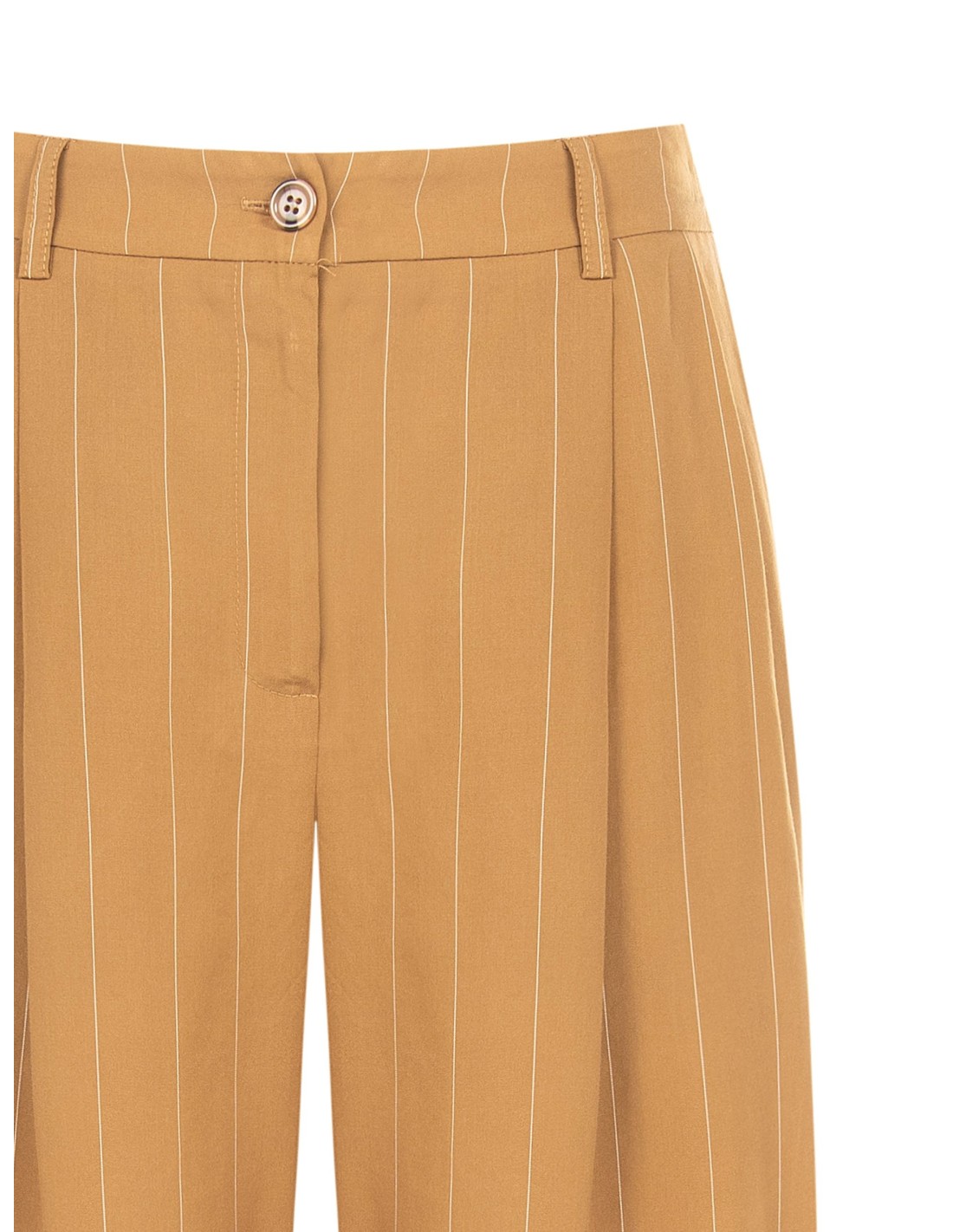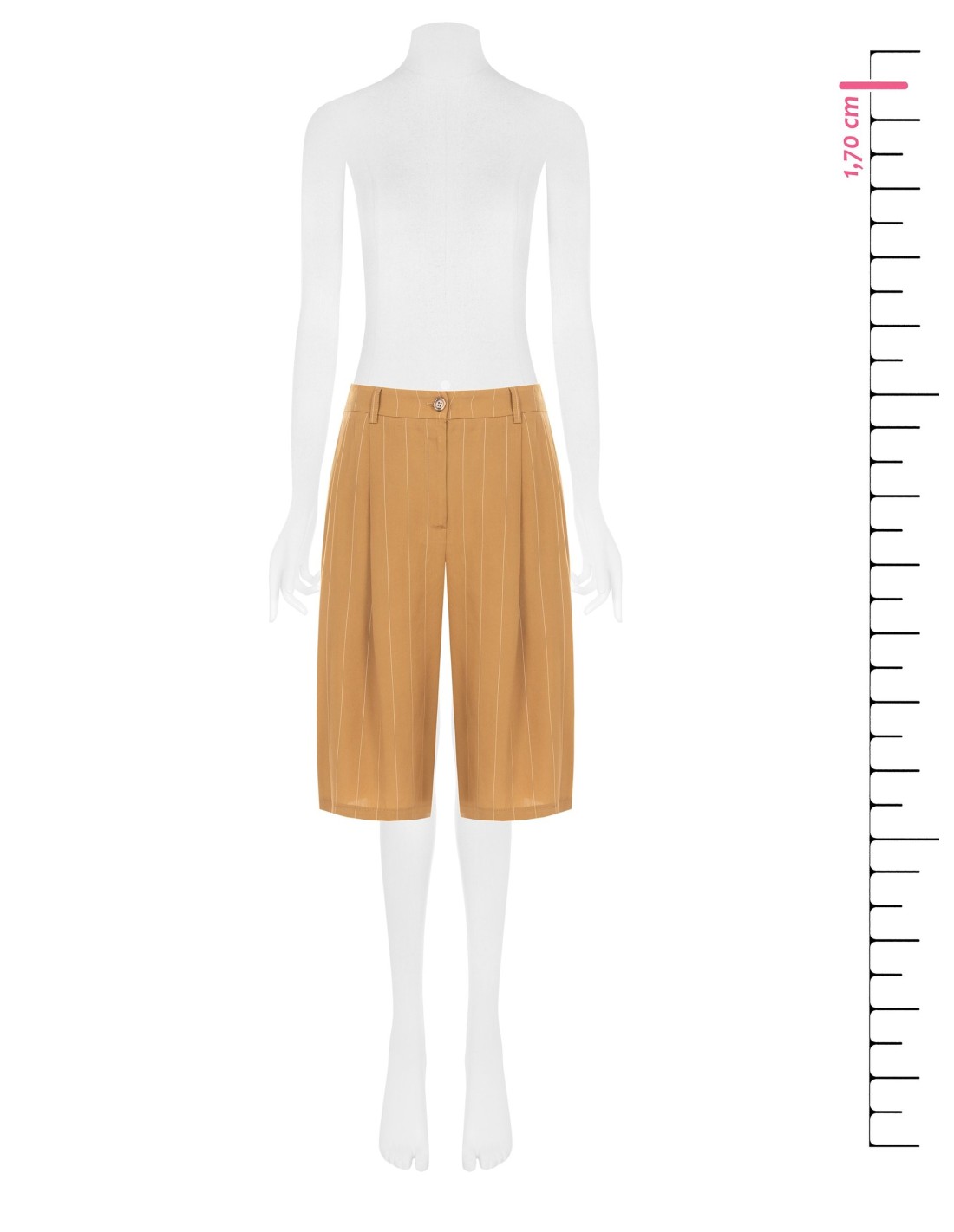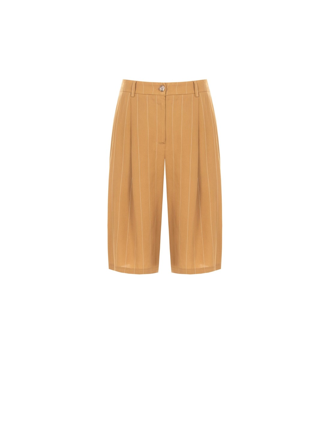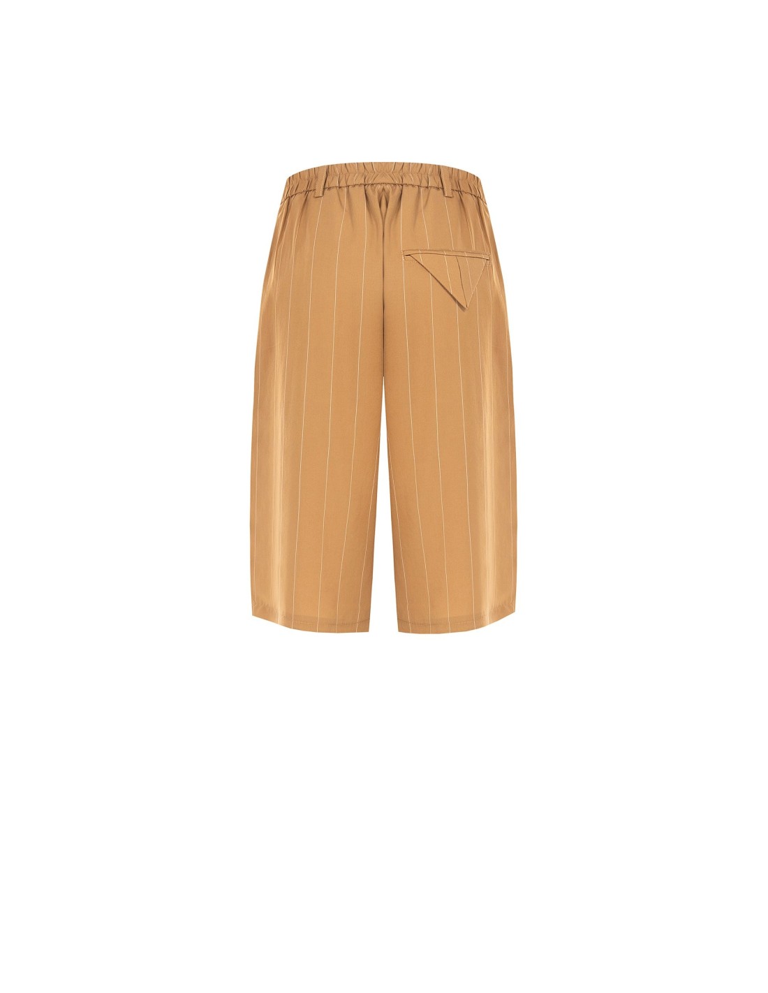 Bermudas de corte macio e fluido, em tecido leve com toque suave e refinada risca‑de‑giz. O fecho com botão e a cintura elástica na parte traseira garantem conforto e uma silhueta cuidada. Ideais para o escritório, para o tempo livre ou para looks do dia a dia de gosto requintado.