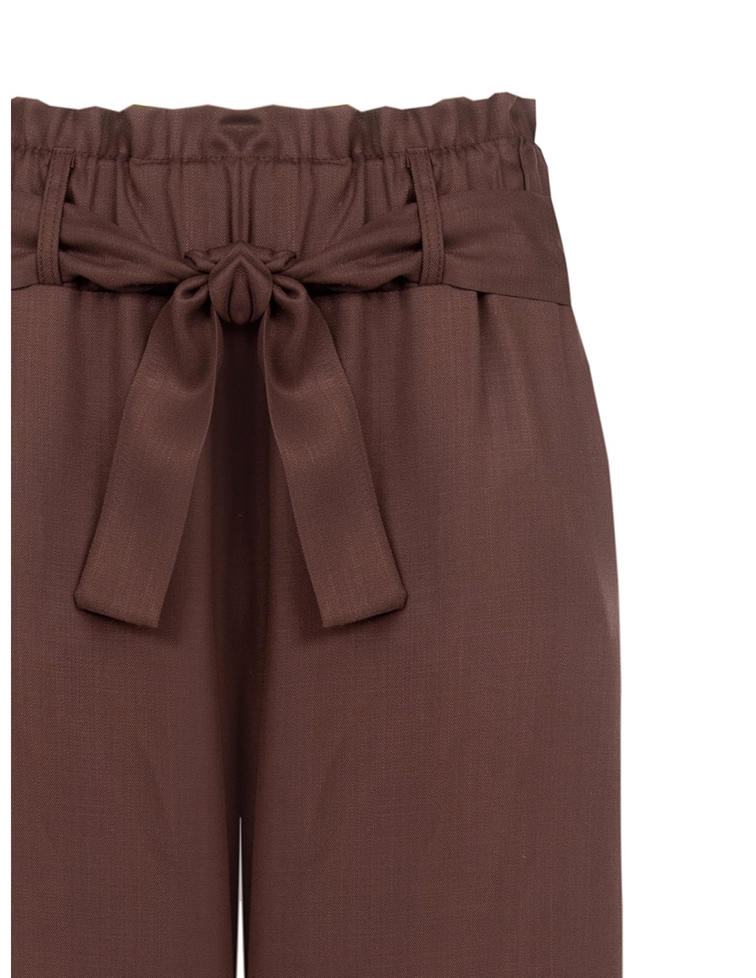 Corte amplo e cintura alta para um caimento fluido que estiliza a silhueta com conforto. Em tecido macio de textura compacta, destaca-se pelo cinto atado com laço e pela cintura franzida estilo paperbag. Perfeito do escritório ao chic do dia a dia, com blusas e blazers ou tops essenciais.