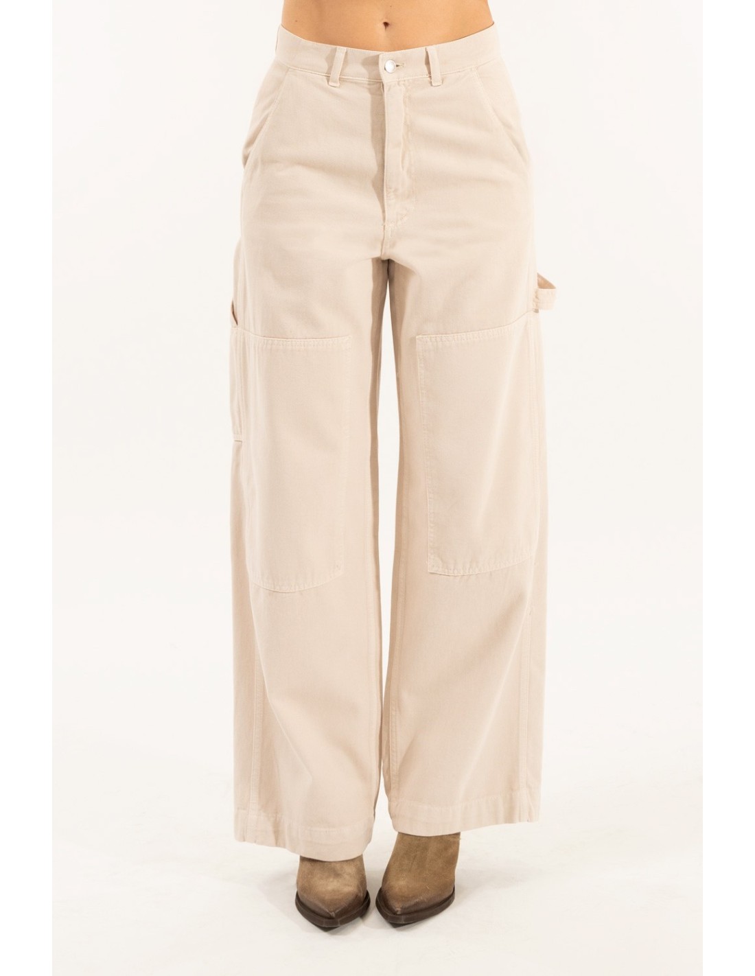 Kontatto assina umas calças de perna larga com corte descontraído, em twill de algodão macio e resistente para um conforto que dura todo o dia. Bolsos aplicados e passante lateral de inspiração utilitária afinam a silhueta e acrescentam funcionalidade. Perfeito para o dia a dia e para a casual Friday com blazer ou camisola de malha.