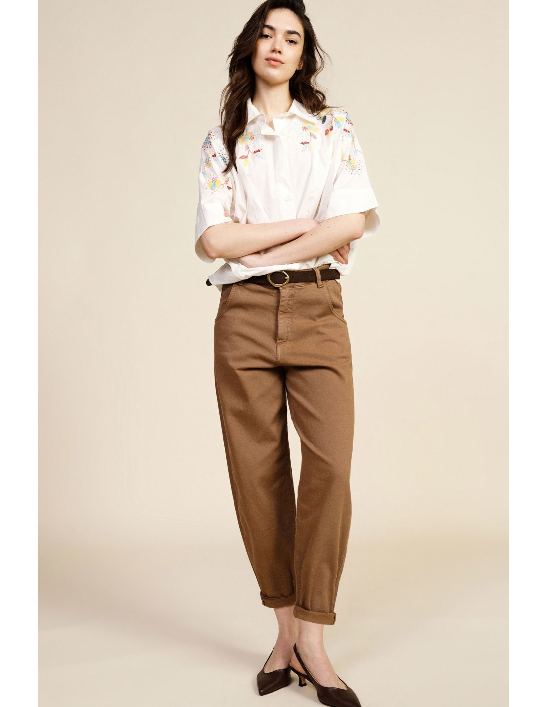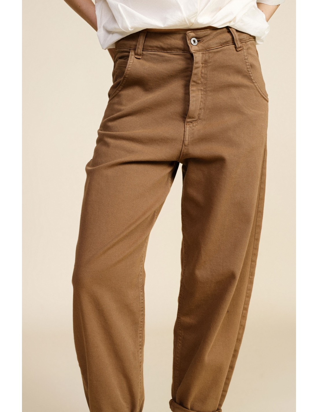 Com estas calças chino fit de cintura alta, cada dia ganha um toque casual mas cuidado. O corte fluido com dobra no tornozelo confere conforto e versatilidade, perfeitas para combinar tanto com blusas leves como com camisolas. Detalhes estruturais como os bolsos e os passadores acrescentam praticidade e estilo imediato a cada um dos teus outfits.