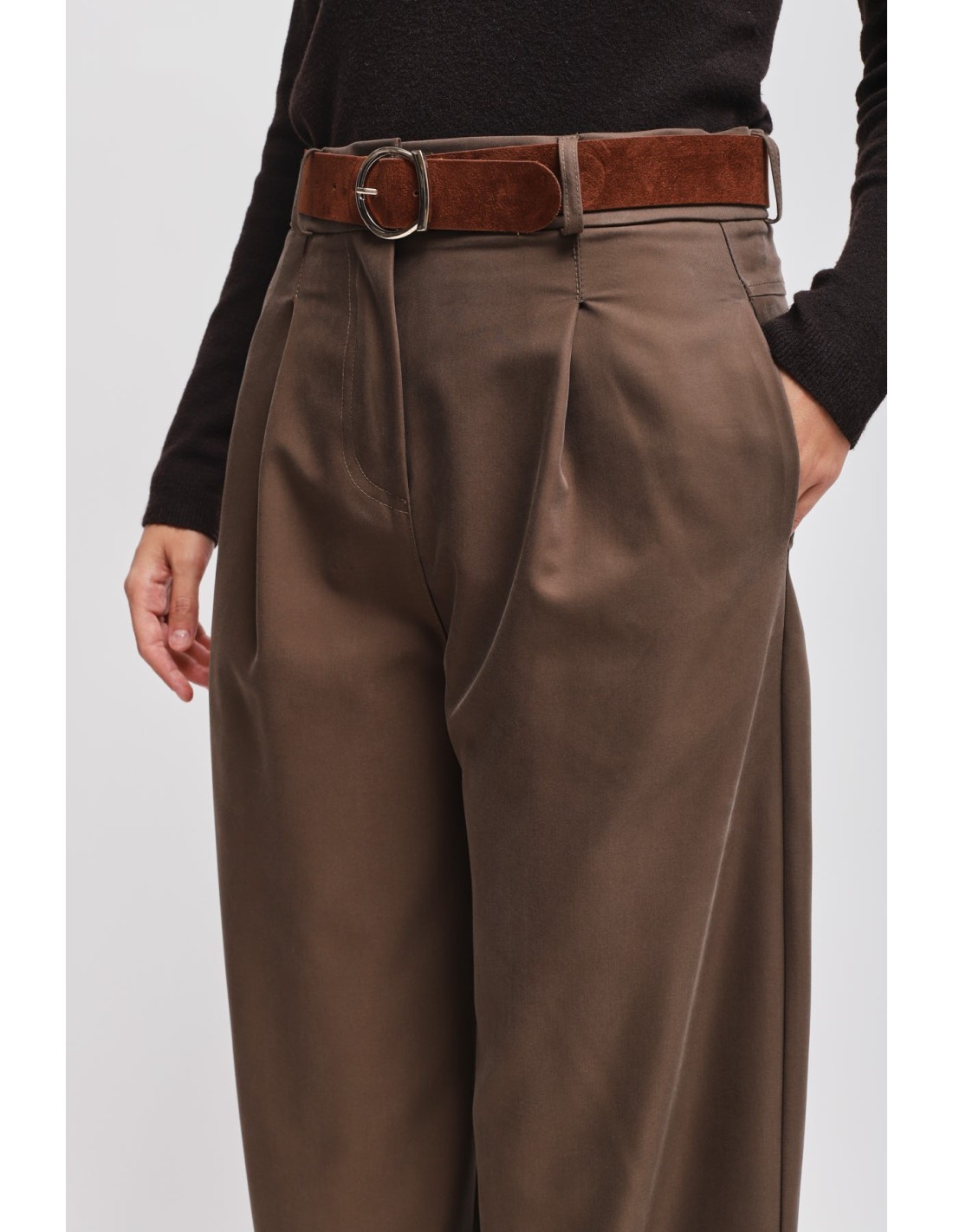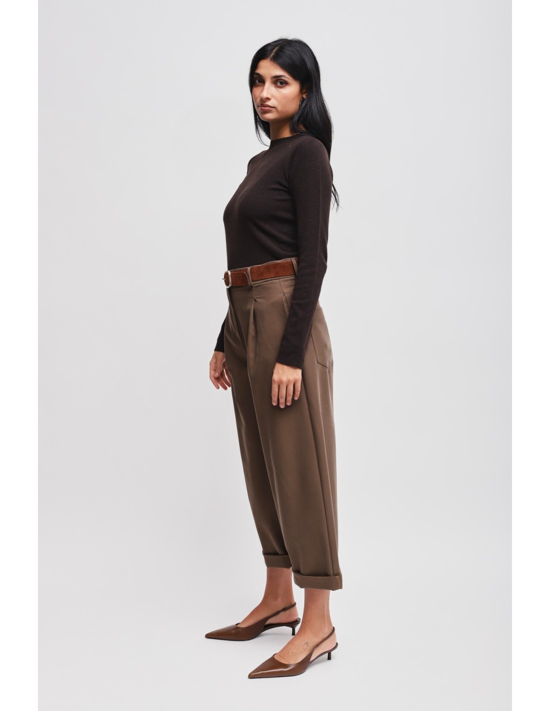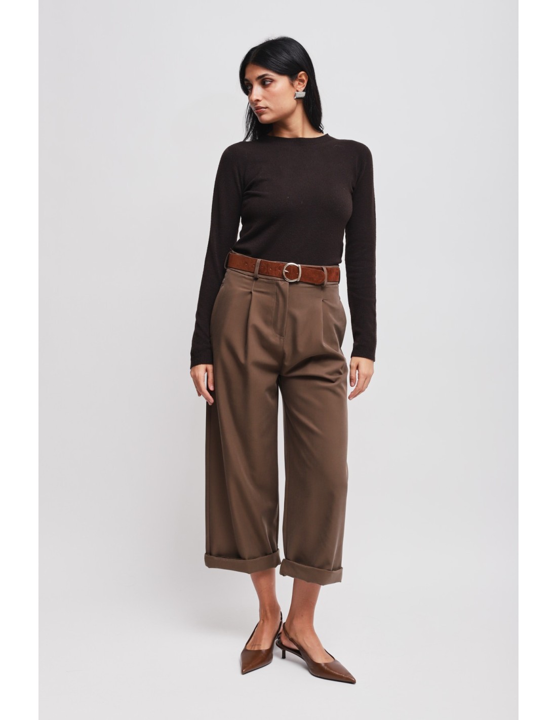 Maryley assina calças soltas e direitas, corte cropped com bainha virada para alongar o tornozelo. Tencel sedoso com efeito fluido para conforto durante todo o dia. Cintura com fivela oval e pregas frontais definem a cintura. Versátil do escritório ao fim de semana, perfeita com blazer ou camisola leve.