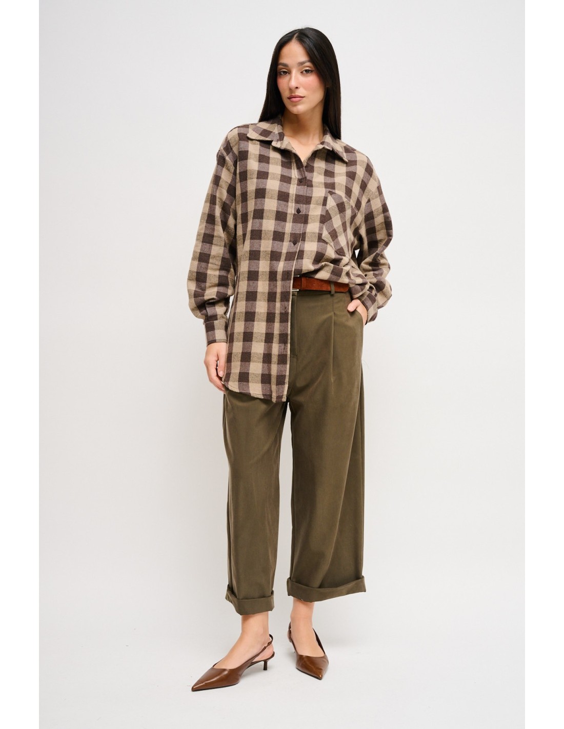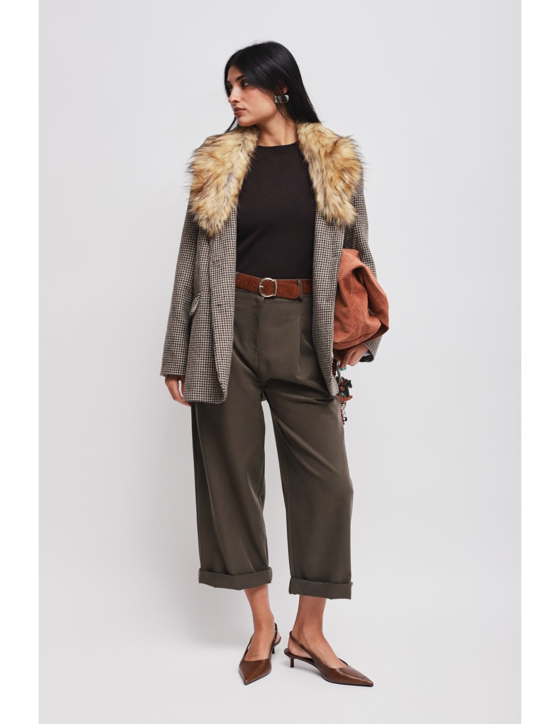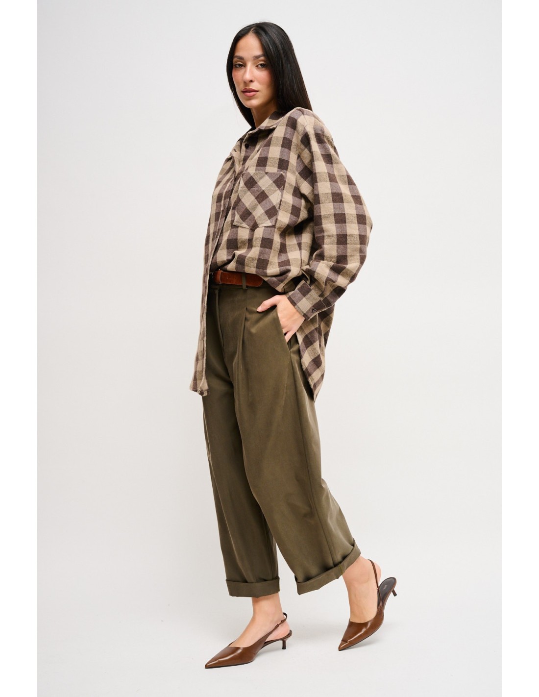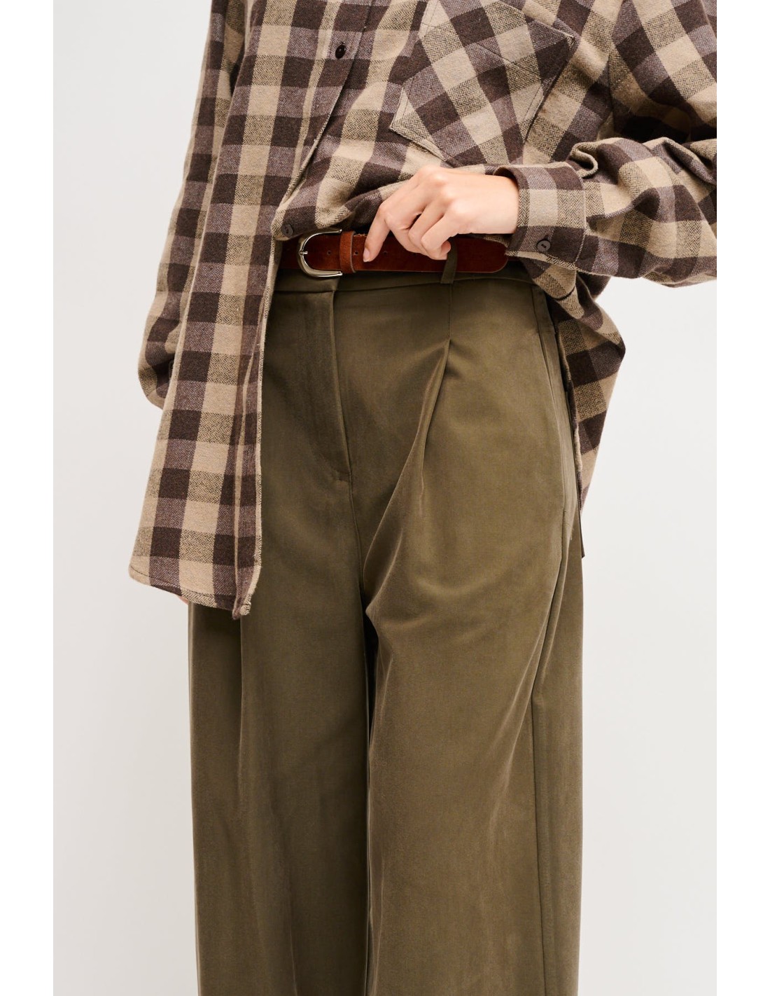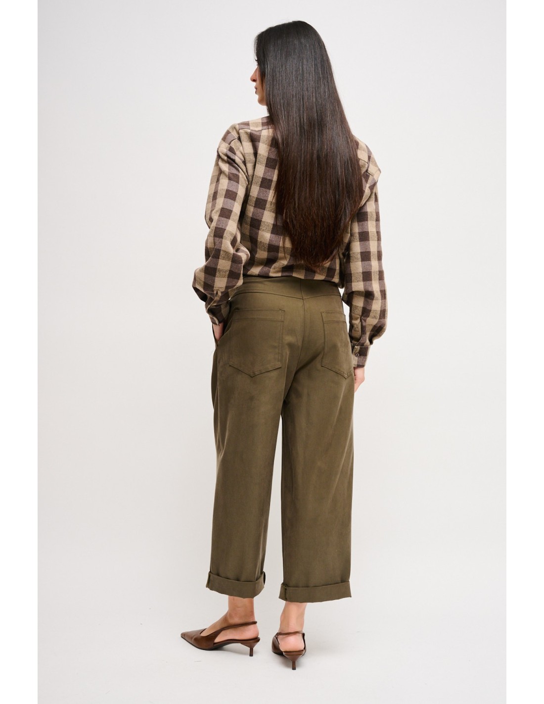Maryley assina calças soltas e direitas, corte cropped com bainha virada para alongar o tornozelo. Tencel sedoso com efeito fluido para conforto durante todo o dia. Cintura com fivela oval e pregas frontais definem a cintura. Versátil do escritório ao fim de semana, perfeita com blazer ou camisola leve.