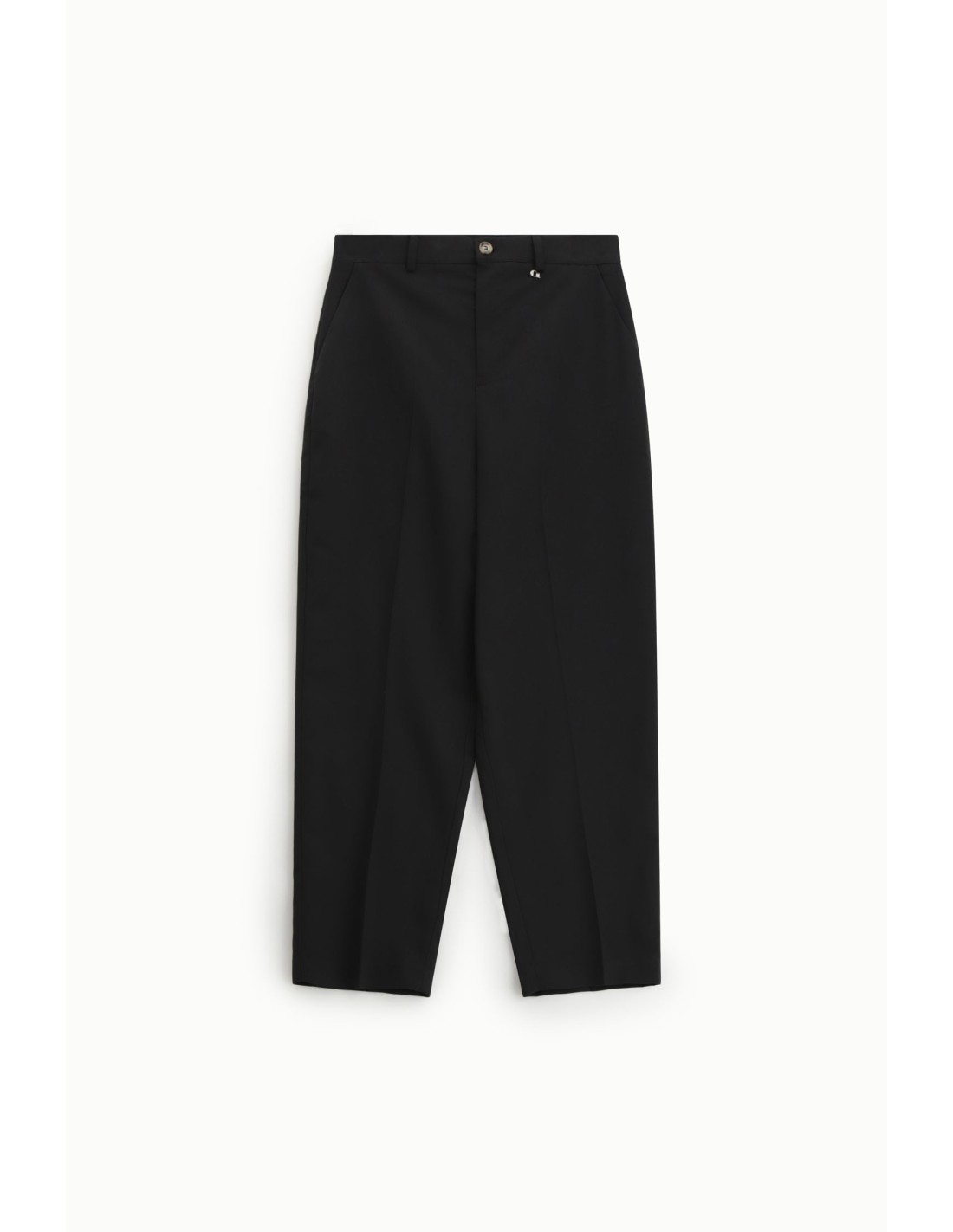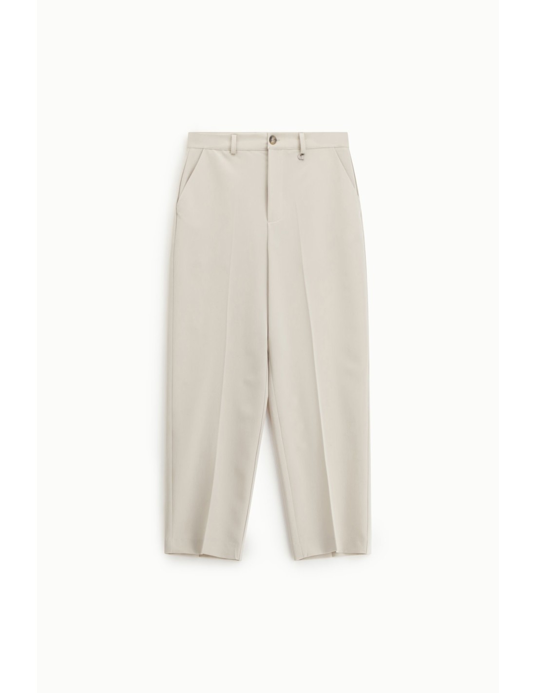 Calças cropped de cintura alta com vinco frontal