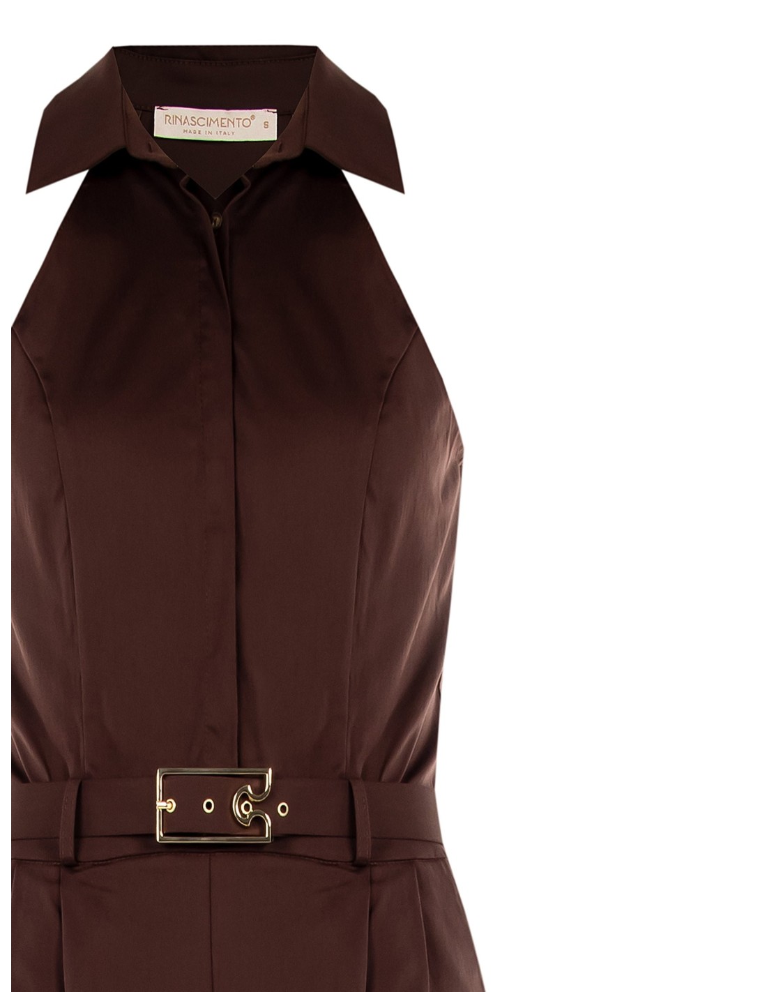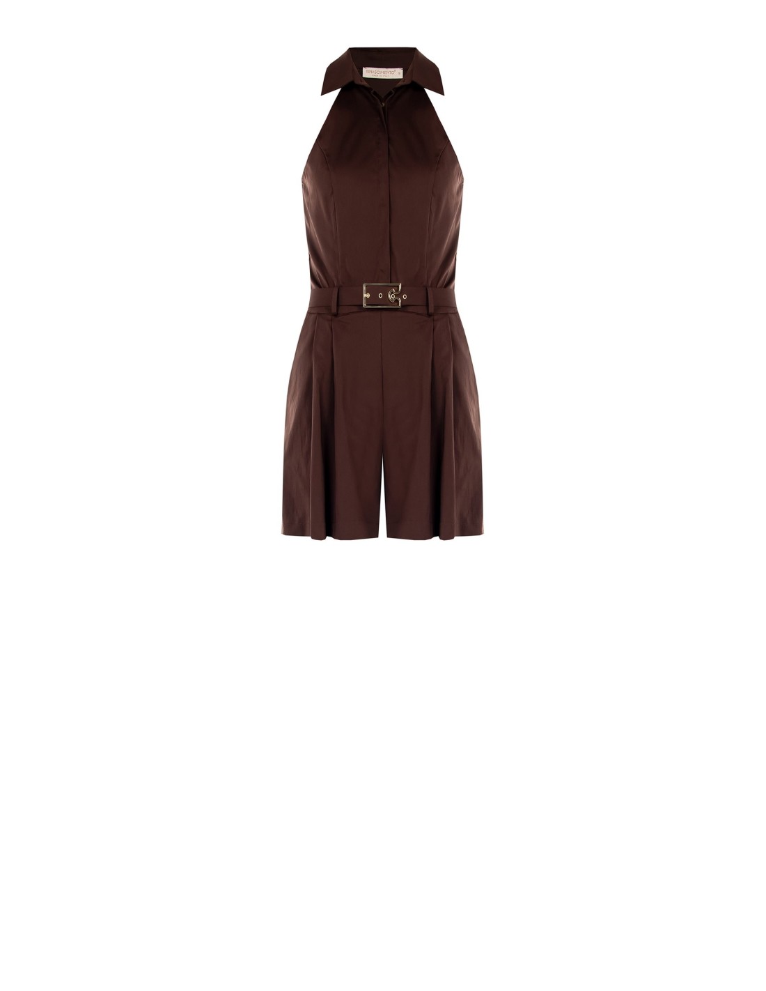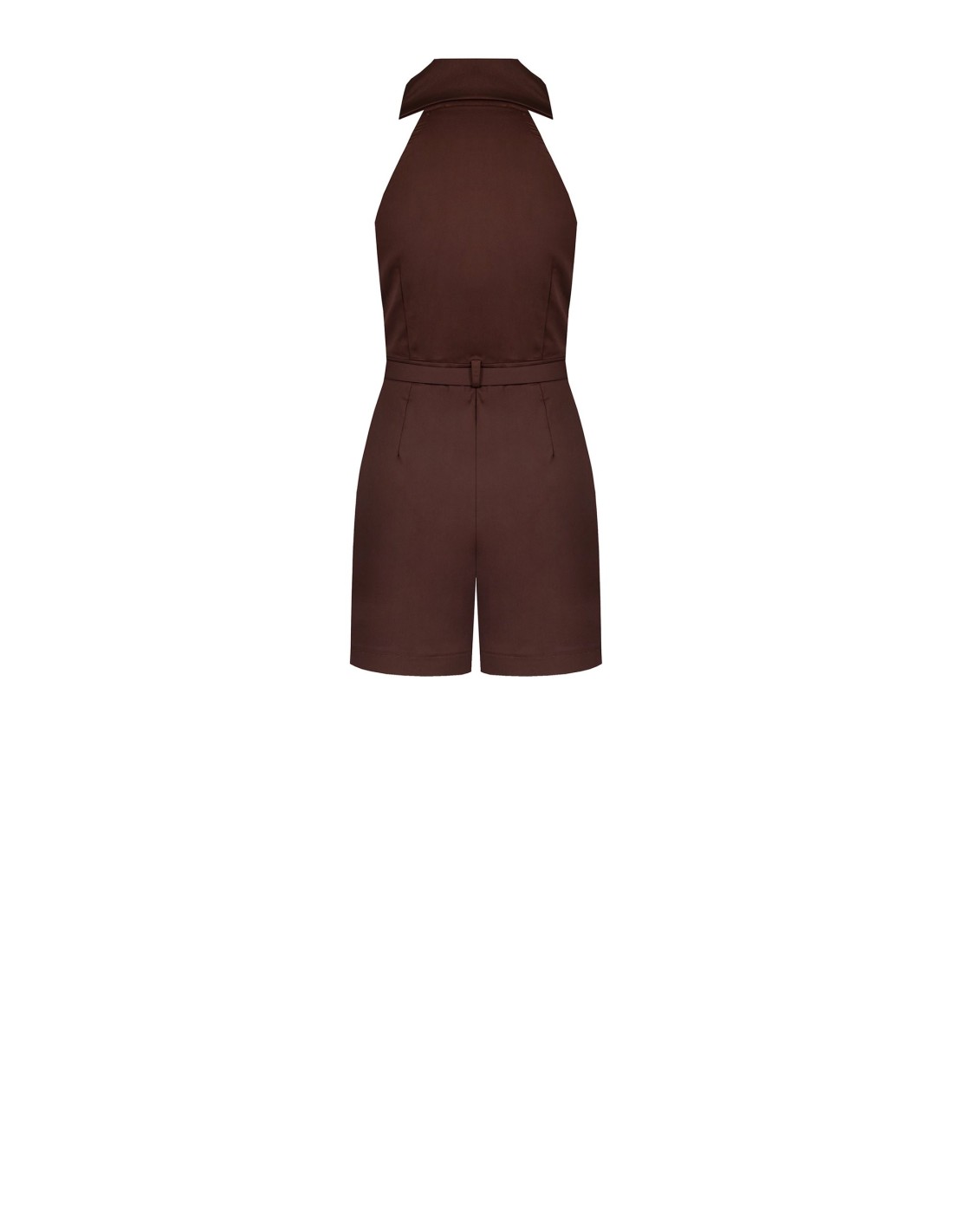 Macacão curto com corte fluido que acaricia a silhueta com leveza. O tecido liso e compacto assegura conforto e estrutura, enquanto a gola de lapela e o cinto com fivela com logótipo definem a cintura. Perfeito do escritório ao aperitivo, com um estilo descontraído.