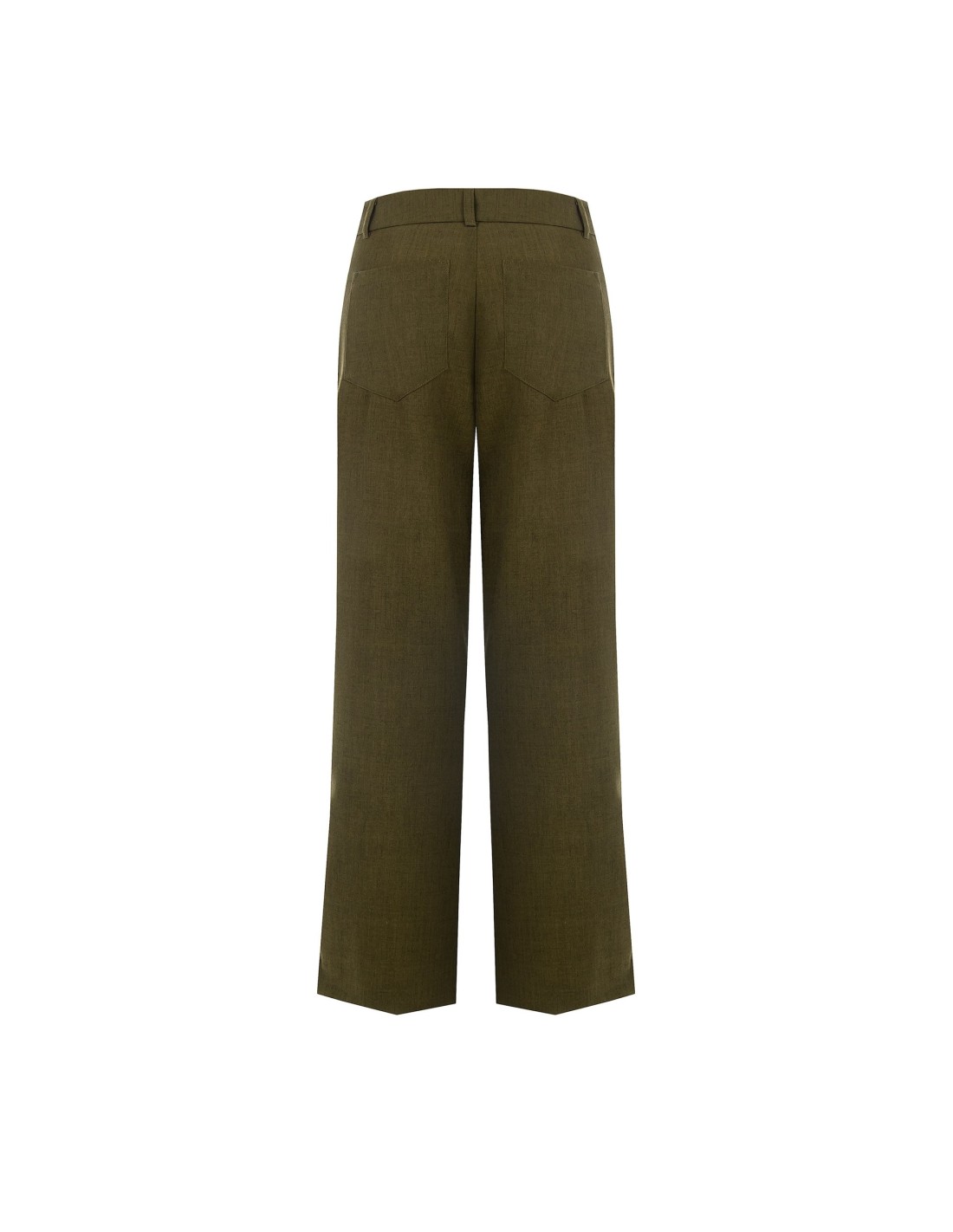 Calças Retas Cropped Com Bolsos Frontais Rinascimento