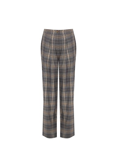 Rinascimento apresenta umas calças de perna reta com corte descontraído que alongam a silhueta. Tecido macio e consistente com padrão xadrez. Cintura confortável graças ao elástico posterior, pregas frontais duplas e fecho com botão. Perfeito para o escritório e para looks do dia a dia cuidados.