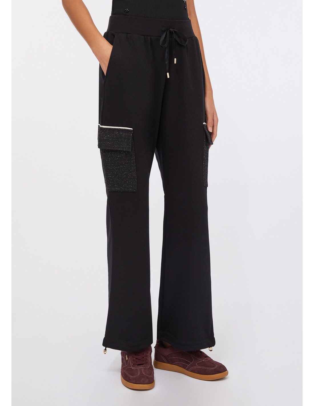 • Bainha elástica com cordão nos tornozelos