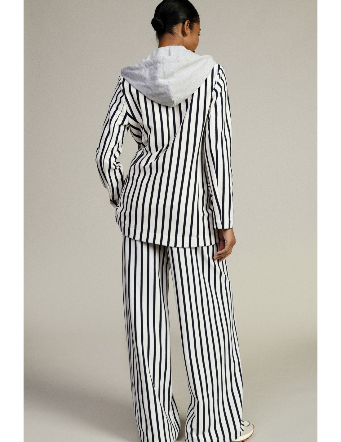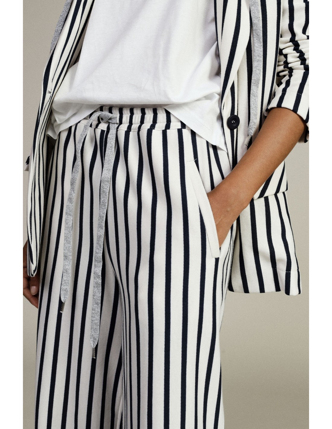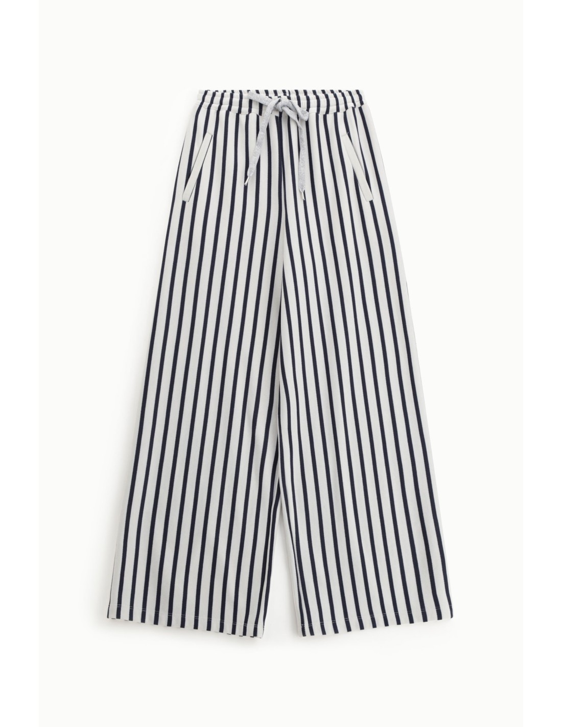 Calças palazzo às riscas com cintura alta e cordão