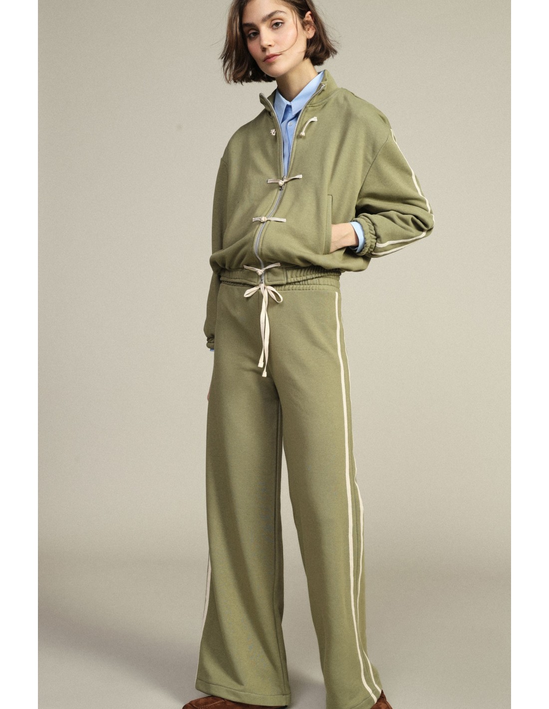 Um corte amplo e linear acompanha-te em todos os momentos do dia, oferecendo conforto e liberdade de movimento. O cordão na cintura permite ajustar o caimento, enquanto as faixas laterais acrescentam um toque desportivo e original. Imagina usá-las tanto para relaxar como para sair com leveza e estilo.