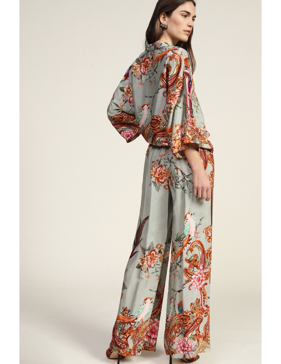 Descubra a elegância do dia a dia com estas calças palazzo. Os seus motivos florais acrescentam um toque artístico, enquanto o corte amplo garante conforto e fluidez. Perfeitas para quem gosta de looks femininos e requintados, estas criações oferecem a combinação ideal entre originalidade e usabilidade diária, tornando cada passo uma experiência única.
