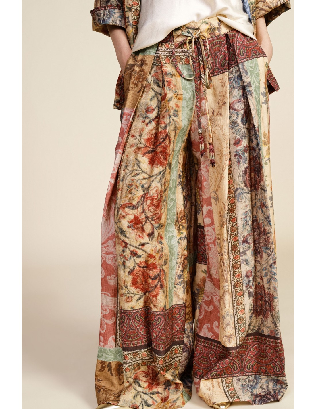 Calças palazzo com motivos ornamentais