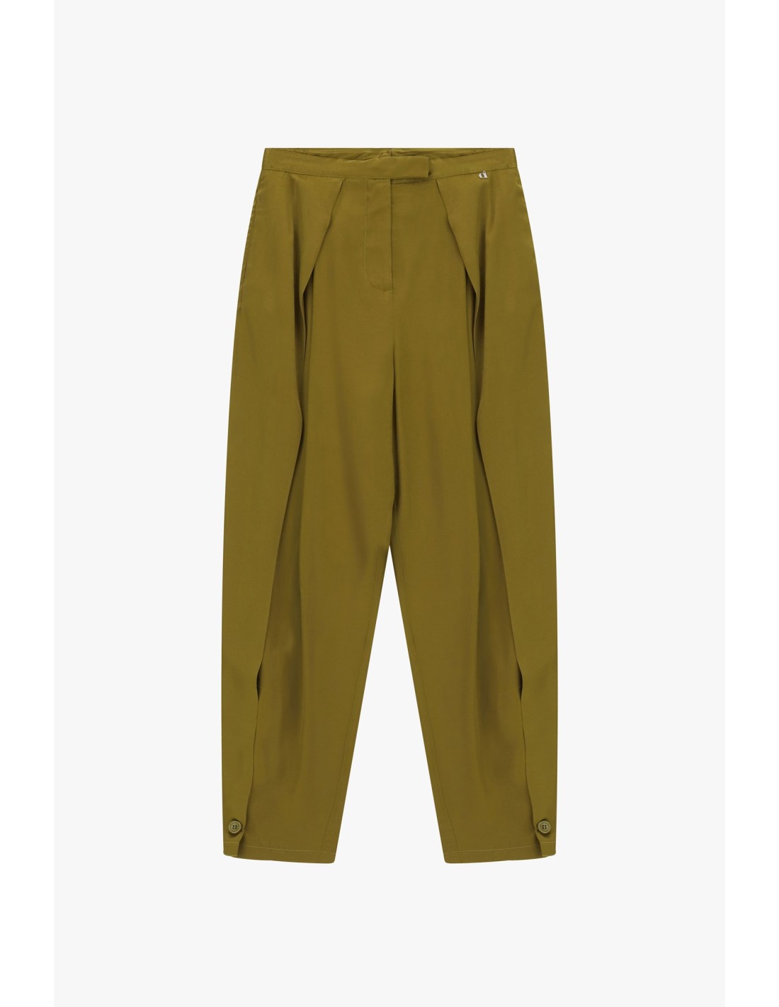 Linhas fluidas que te acompanham em todos os momentos do dia: calças palazzo com pinças frontais que conferem movimento e uma silhueta elegante mas descontraída. A bainha com fecho de botões acrescenta um toque original e prático, perfeito para quem procura um estilo pessoal e sempre funcional.